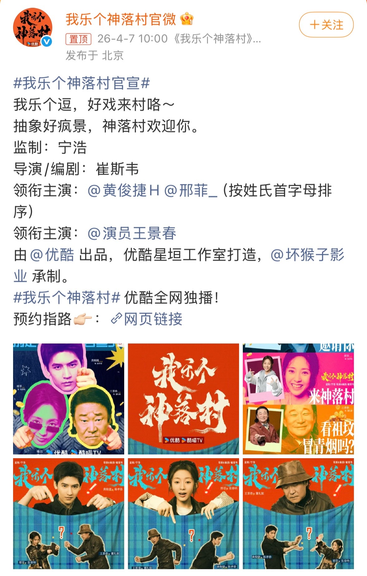 黄俊捷这两年算是一直闷声发小财啊虽然流量下去了但是也一直有坚持拍男一戏,没有眼高手低拒短剧、中剧,制作慢慢升级,这次新剧搭了生万物女二邢菲和影帝王景春,宁浩监制我乐个神落村官宣