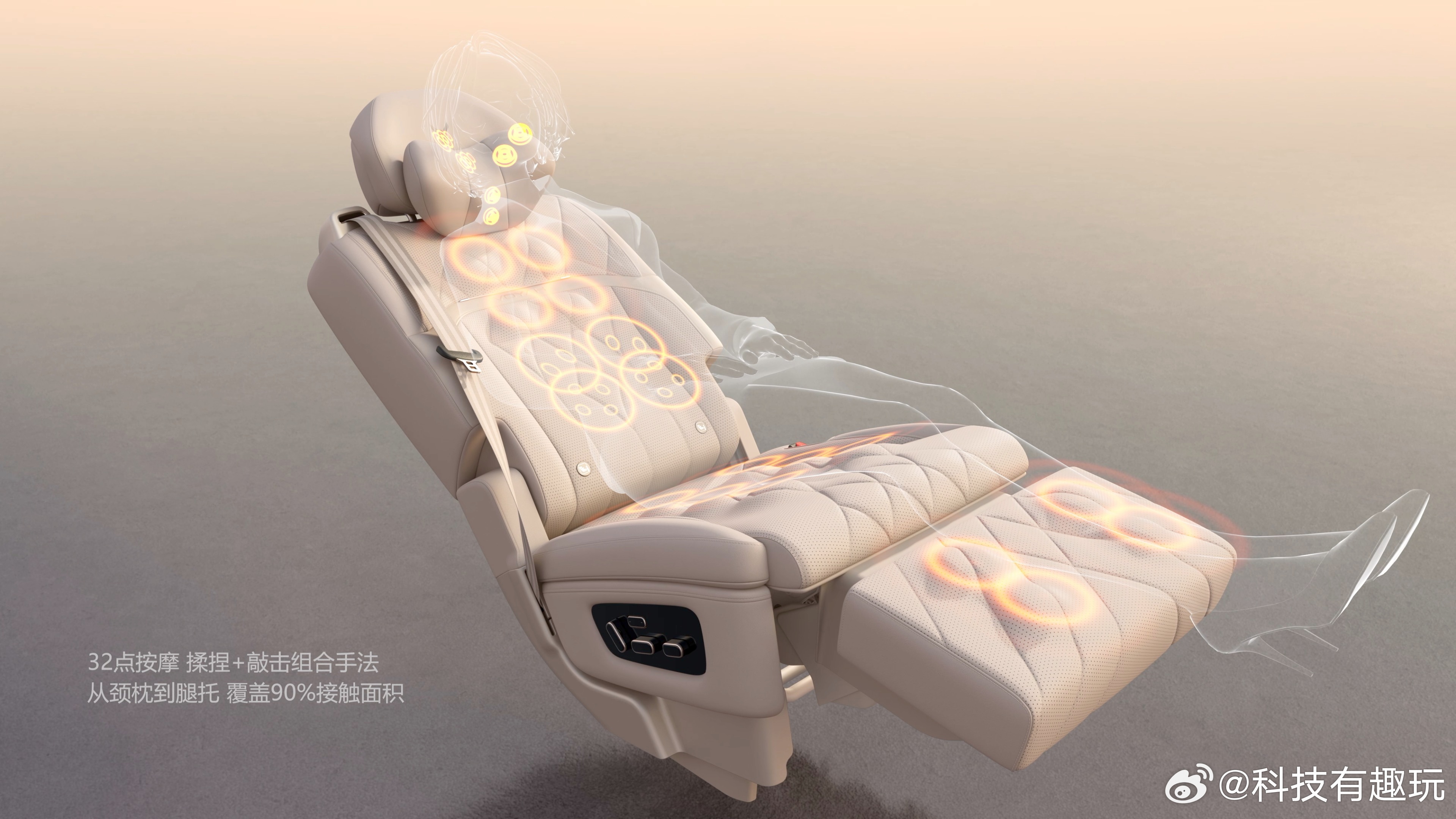 泰山X8座椅支持总统大三座、豪华大四座、宽绰大五座三种模式自由切换,副驾可折叠隐藏,配合14向电动调节功能,秒变移动私享舒躺空间。同时,采用全球首发机械揉捏+气袋敲击双重按摩手法,实现32点环抱式覆盖和同级唯一的热石按摩体验,精准缓解颈、腰、背、臀、腿全部位肌肉疲劳。