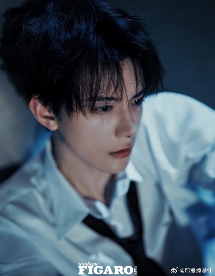 感觉邓凯下一秒要强制爱了邓凯面部折叠度邓凯费加罗男士阴湿感封面 白衬衫小狗,黑衬