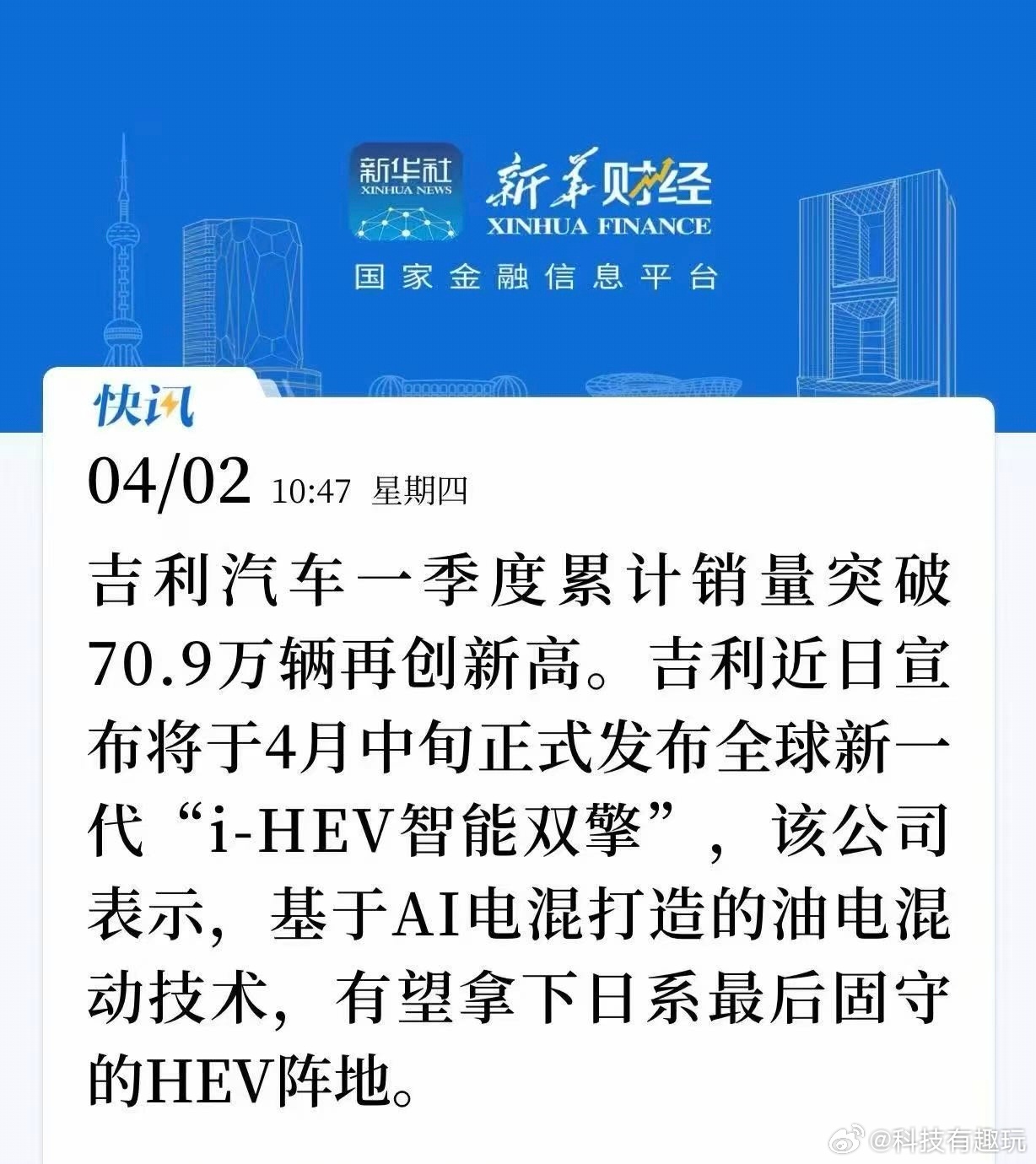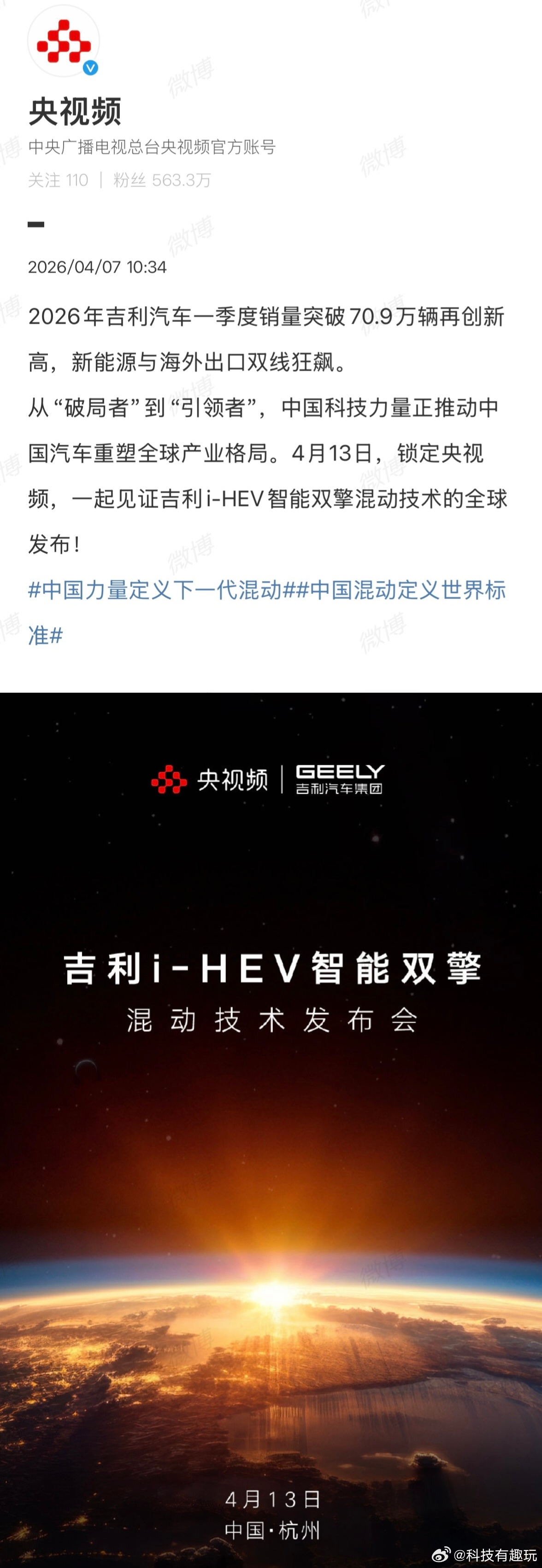 2026年一季度,吉利以70.9万辆销量再创新高,新能源与海外出口双线狂飙 。销量是市场的选择,技术是底气的根源。当中国车企不再追赶,而是定义下一代,属于中国混动的时代,真的来了