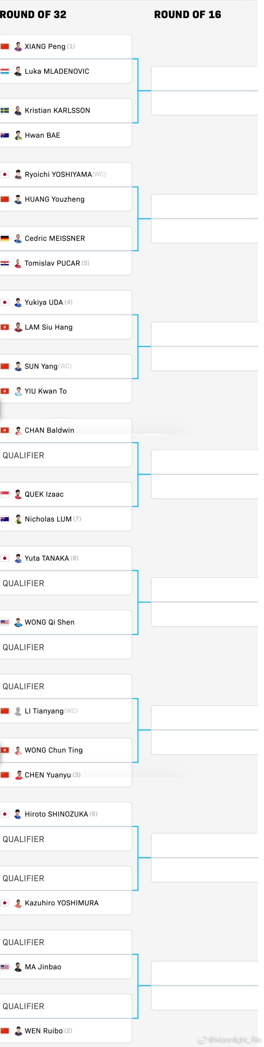 WTT常规挑战赛太原站2026 女单、男单正赛签表
