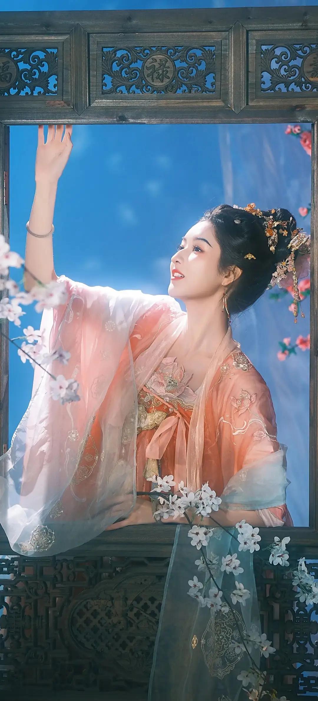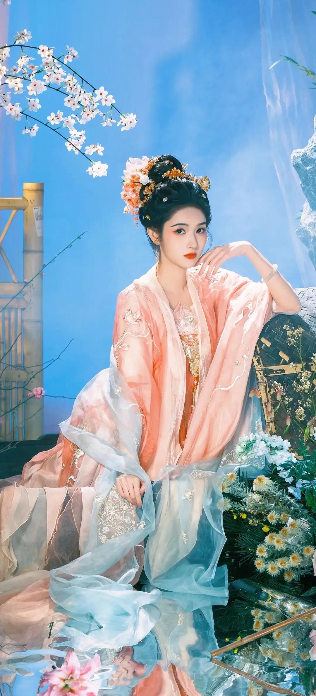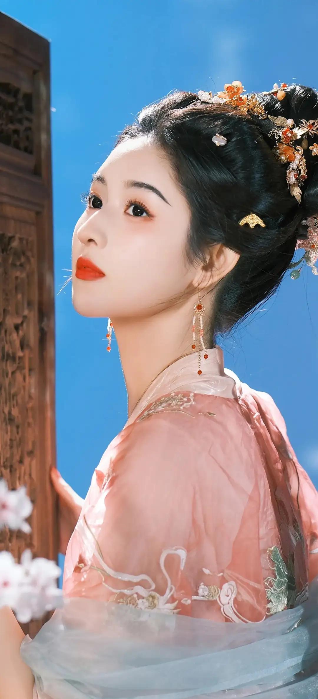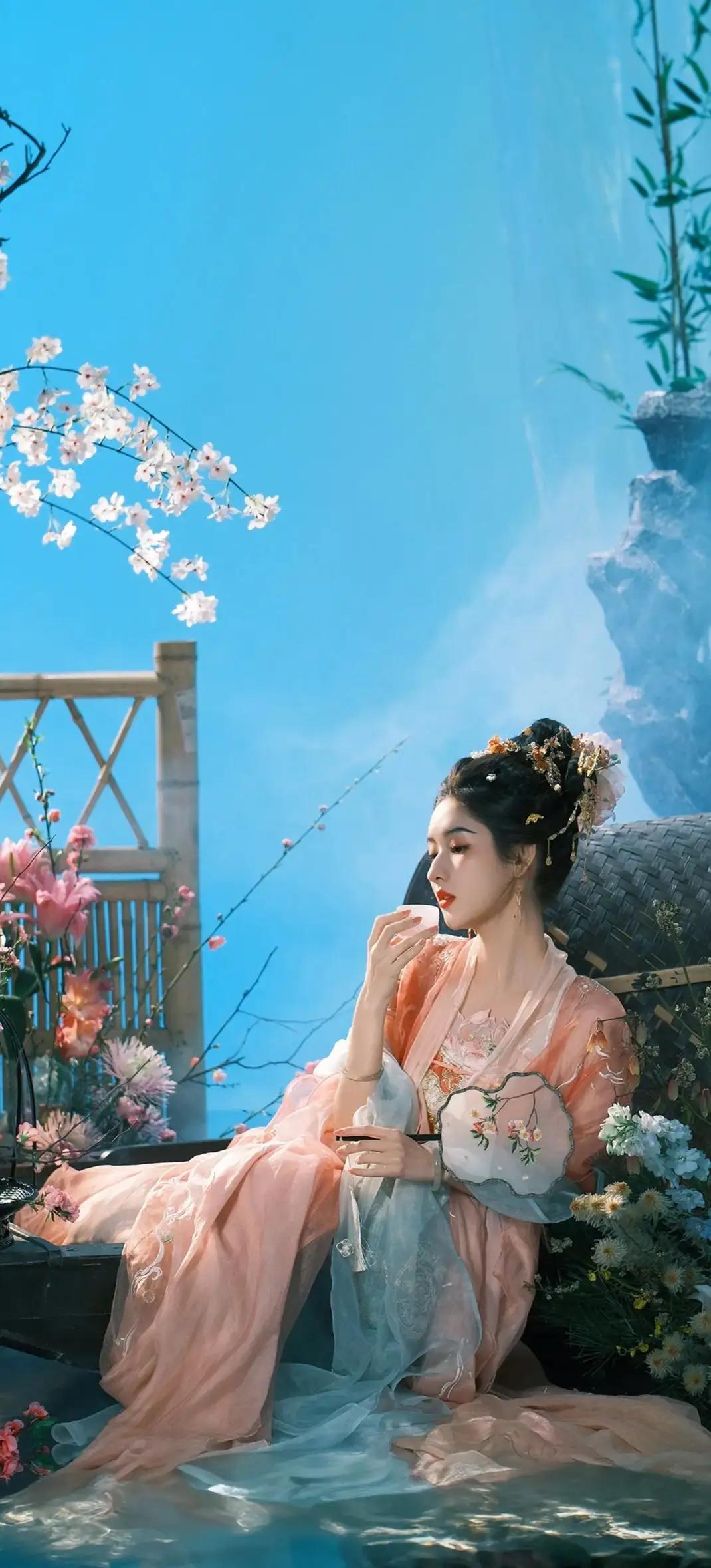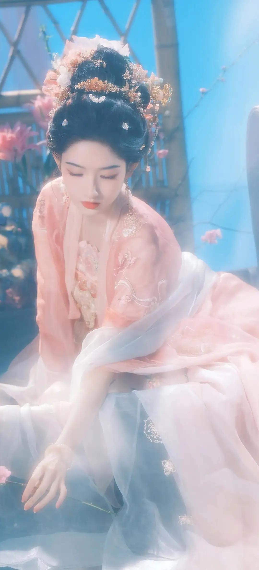 王玉雯,粉裙曳水,簪花映容,一颦一笑皆是东方古韵。 汉服之美,在一针一线的精致,在一颦一笑的灵动,更在刻在骨子里的东方浪漫。