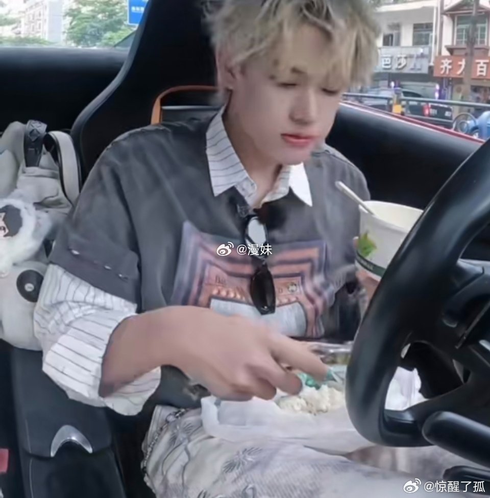张极在跑车上吃猪脚饭登陆少年团搞笑担当预定!张极跑车炫猪脚饭,散装米饭放腿上,画面喜感十足。