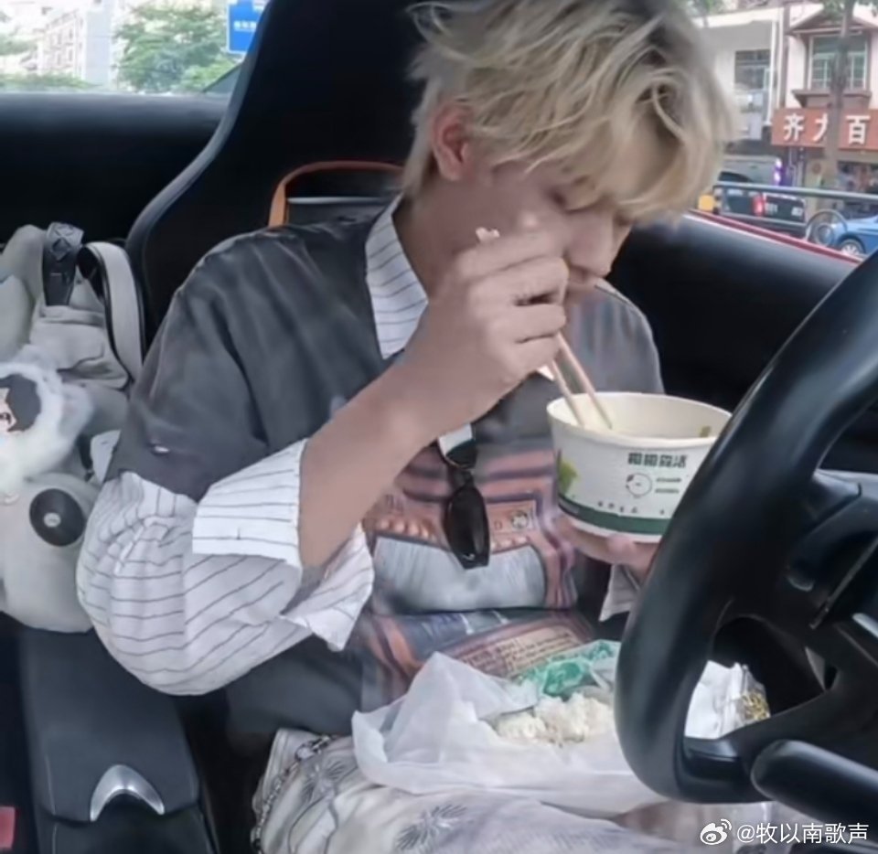 张极在跑车上吃猪脚饭 豪 车配猪脚饭,散装米饭放腿上,干饭人实锤,反差萌拉满,接地气又可爱!