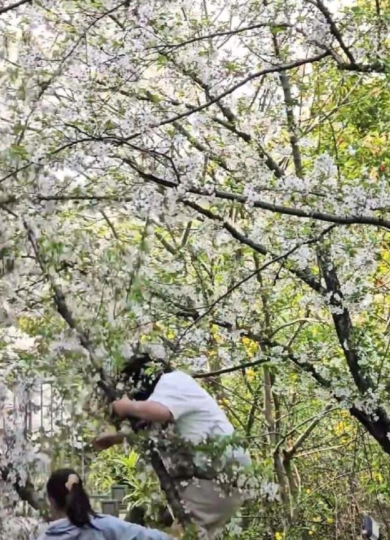 4月6日,一名网友发布视频称,在上海顾村公园,一名身材略胖的女游客爬上樱花树上拍照,结果把树连根压断。 一名女子先爬上樱花树的枝桠,另一名女游客给她递手机时,樱花树突然倒下。肇事女子没有受伤,还能自行爬起来。 顾村公园位于上海宝山区顾村镇,每到春天,赏樱的游人络绎不绝。据内地大风新闻报道,这棵被压倒的樱花树已有20多年的树龄。 公园园林绿化部工作人员表示,他们已经掌握了事件,并将尽全力把这棵树养好,同时呼吁大家文明游园。工作人员还提到,可能派出所在寻找涉事游客。 人们纷纷谴责这种不文明的行为。关注肇事者是否要向园方赔偿。
