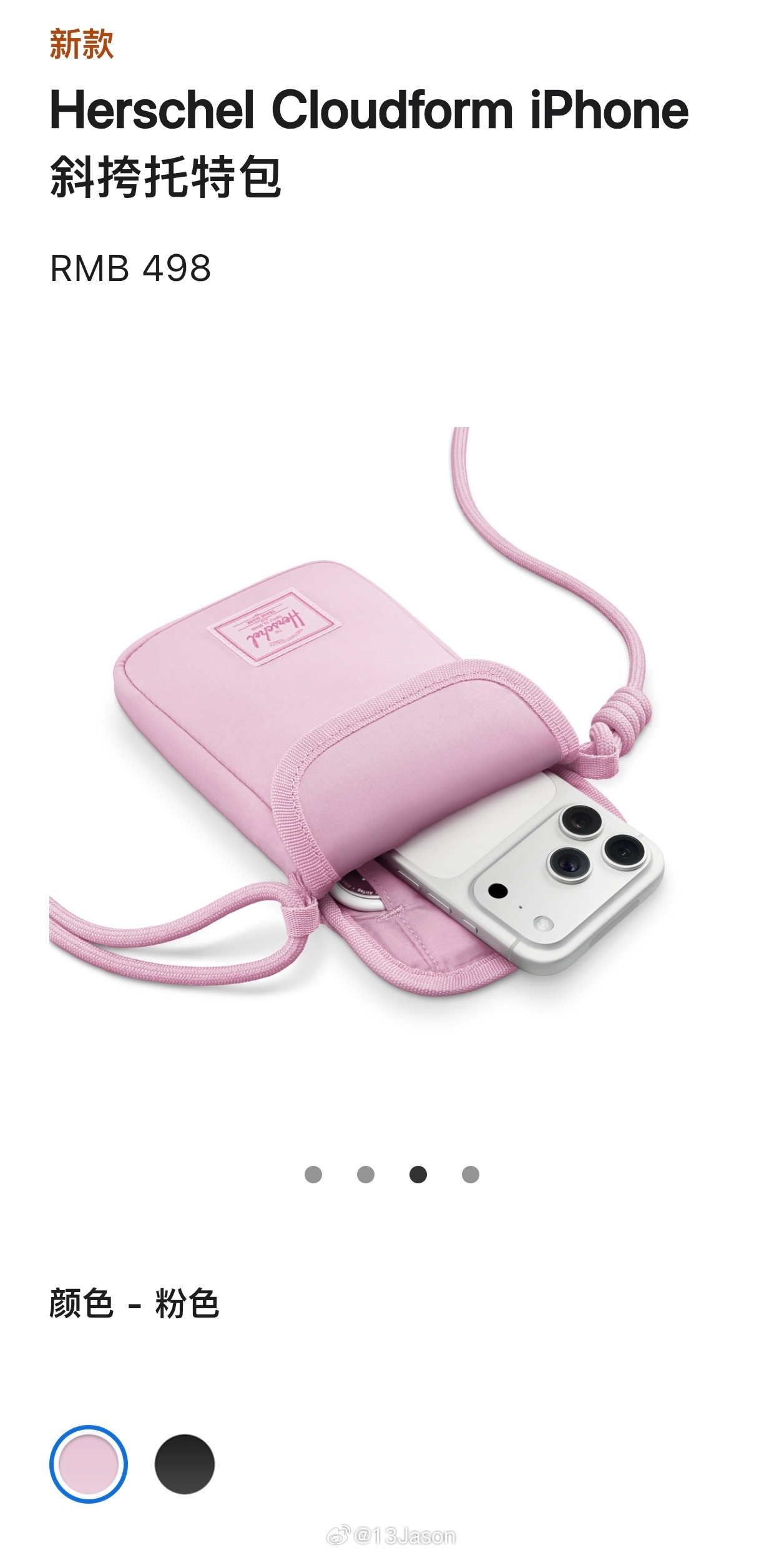 iPhone斜挎包 居然是 Herschel 的斜挎包,黑色和粉色两个颜色。