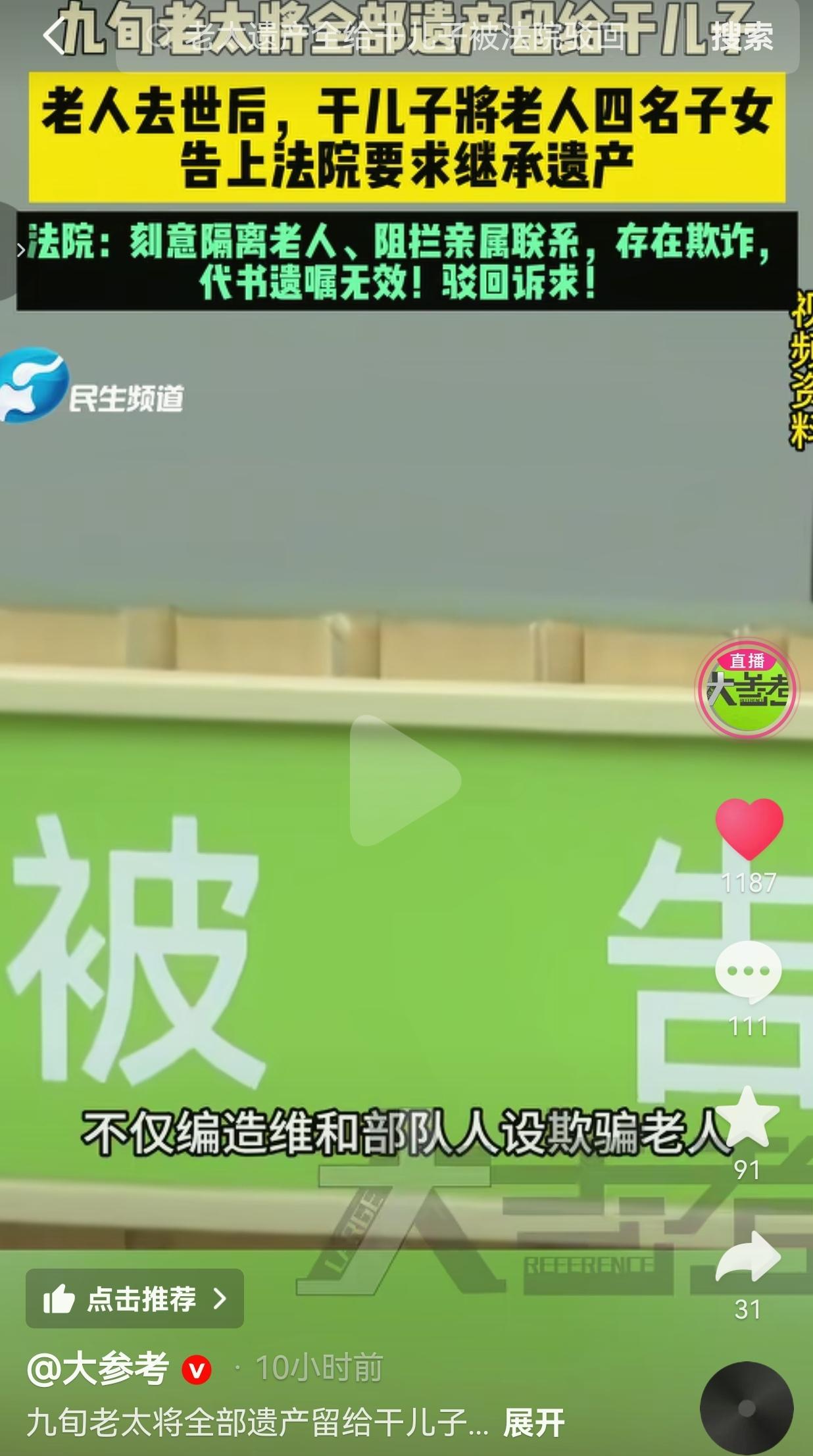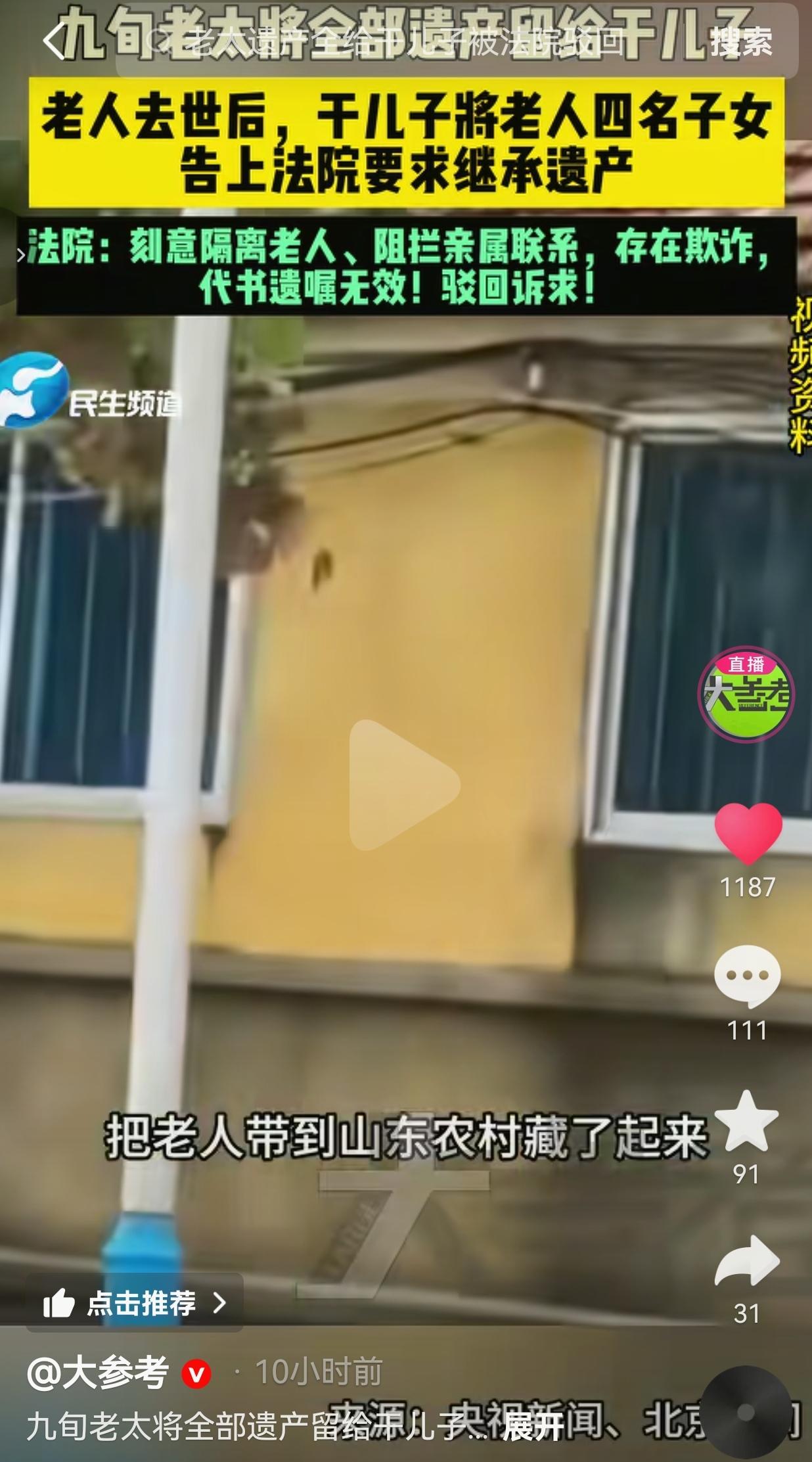 太气人了!这哪是什么干儿子,分明就是披着“孝子”皮的白眼狼,为了吞掉老人一辈子的家产,连最基本的人性都不要了! 上海一位九旬王老太,辛辛苦苦一辈子,有4个亲生子女。 本该是儿孙绕膝、安享晚年的年纪,却被在养老院认识的一个“干儿子”骗得团团转。 这个人一开始表现得无比孝顺,嘴甜、勤快、事事周到,天天对老人嘘寒问暖,很快就哄得老人十分信任。 更缺德的是,他还编造自己是“维和部队”的身份,用这种光鲜人设彻底骗取老人的放心。 为了牢牢控制住老人、霸占财产,他干出了最阴损的事:刻意隔离老人,阻拦亲属探望,不让4个亲生子女见母亲一面。 甚至偷偷把老人带到山东农村藏了起来,直接切断老人和家人的所有联系。 就在老人被完全孤立、无依无靠的情况下,他哄着老人立下代书遗嘱,把所有财产都留给了自己。 等老人去世后,他更是恶人先告状,拿着这份遗嘱,直接把老人的4个亲生子女告上法庭,要求独占全部遗产。 这操作简直把“贪得无厌”全写在了脸上! 4个子女本来就因为长期见不到母亲而满心愧疚,老人走了还要被一个外人起诉,换谁能不崩溃、不心寒? 更让人愤怒的是,老人去世后,他甚至没有通知家属,直接把骨灰随意处理,连最后一点体面都没留给老人和家人。 好在法律不会放过恶人。 上海市长宁区人民法院经过详细审理,查明事实:这名干儿子存在编造身份、欺诈老人、故意隔离老人与亲属等严重行为,最终直接判定,老人生前所立遗嘱无效,驳回他的全部诉讼请求! 骗局被彻底戳穿,结局大快人心! 这件事一曝光,网友们直接炸了锅: 有的网友说:这种人就是赤裸裸的诈骗!骗老人的钱,断老人的亲情,太坏了!法院判得太对,就该让他一分钱都拿不到! 也有的网友说:看完太揪心了!老人一孤独就容易被假孝顺打动,子女再忙也要多陪陪父母,千万别让坏人钻了空子! 还有的网友说:代书遗嘱本身就有严格法律要求,在欺诈、胁迫、隔离情况下立的遗嘱,本来就无效,他以为能钻空子,纯属做梦! 更有网友表示:什么干儿子,就是白眼狼!人前装孝顺,人后藏老人骗家产,因果报应,这次终于栽了! 我是越看越生气。这世上最让人恶心的,就是打着“孝顺”的旗号,背地里算计老人的财产。 口口声声说自己孝顺,却不让老人见亲生儿女。说自己贴心,却把老人藏到千里之外孤立无援。说自己重情义,却连老人的骨灰都不妥善安置。 说白了,他从头到尾在乎的根本不是老人,只是那笔家产。 年纪大的人最怕孤独、最渴望陪伴,一点虚情假意就能让他们放下防备。 他们以为遇到了依靠,殊不知是掉进了别人精心布置的陷阱。 而被挡在门外的亲生子女,那种无力、委屈、心痛,真的难以想象。 好在法律是公正的,绝不会让小人得逞。 法院这一记判决,不仅还了4个子女公道,也给所有想骗老人、抢遗产的人狠狠一巴掌。 真正的孝顺,从来不是演出来的,也不是靠哄骗、隔离、算计换来的。 陪伴是真心的,照顾是发自内心的,而不是把亲情当筹码,把善良当弱点。 这件事也给所有人提了个醒:做子女的,再忙也要多陪陪父母,别让老人在孤独里被人利用;做老人的,一定要擦亮眼睛,别被几句甜言蜜语冲昏头脑;而那些心怀不轨、想靠欺骗抢夺财产的人,记住一句话: 不是你的东西,再怎么算计也拿不走,早晚要为自己的贪婪付出代价。 因为,人在做,天在看,骗老人的钱,伤亲人的心,终究逃不过法律与良心的双重审判。 对此,你怎么看? 信息来源:大参考