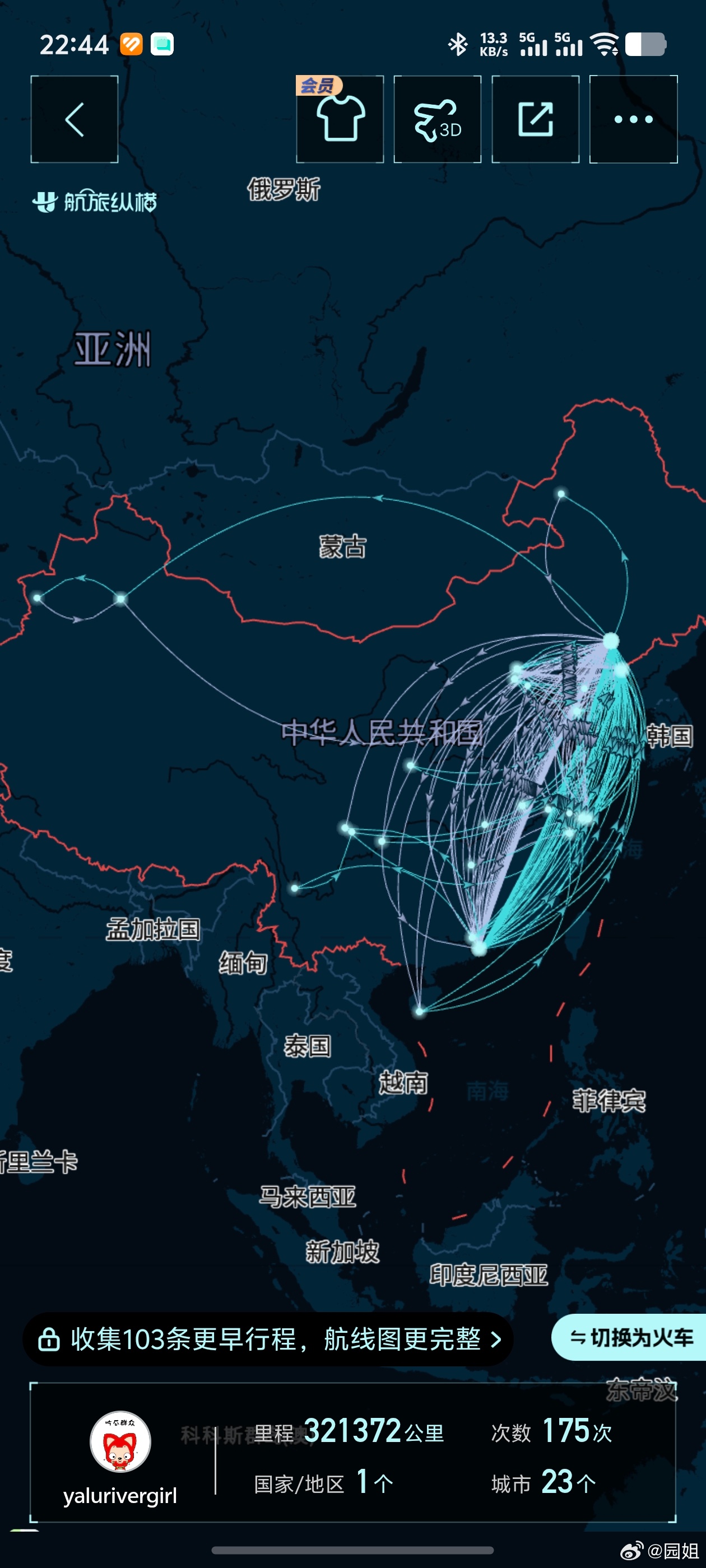这些年的部分飞行轨迹,想看全部的还要花钱
