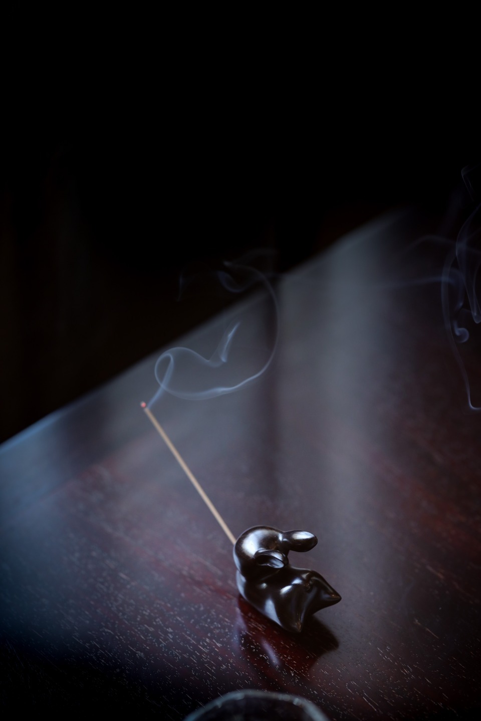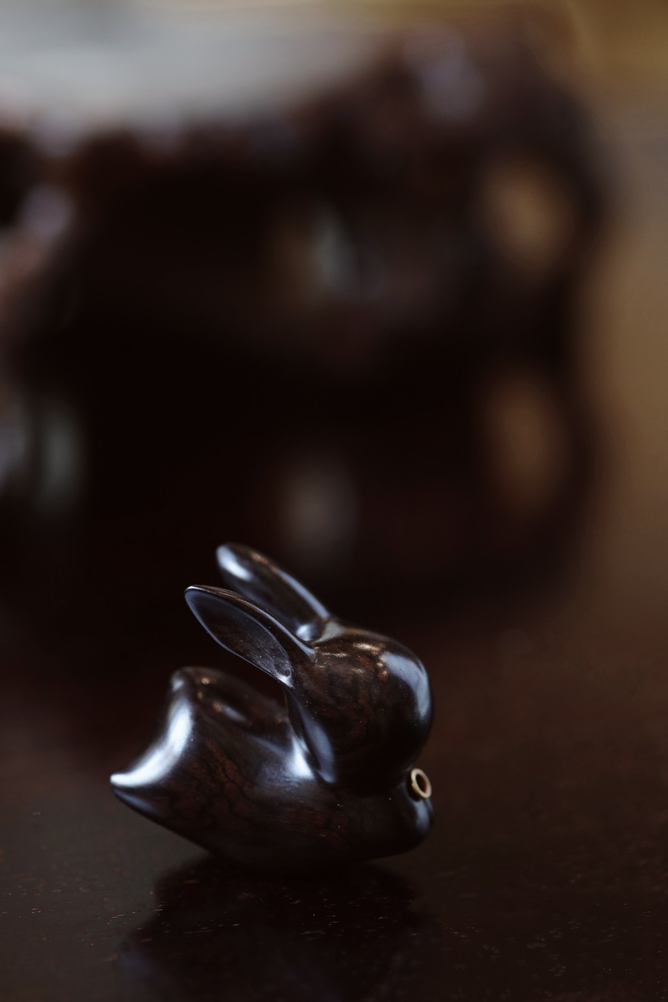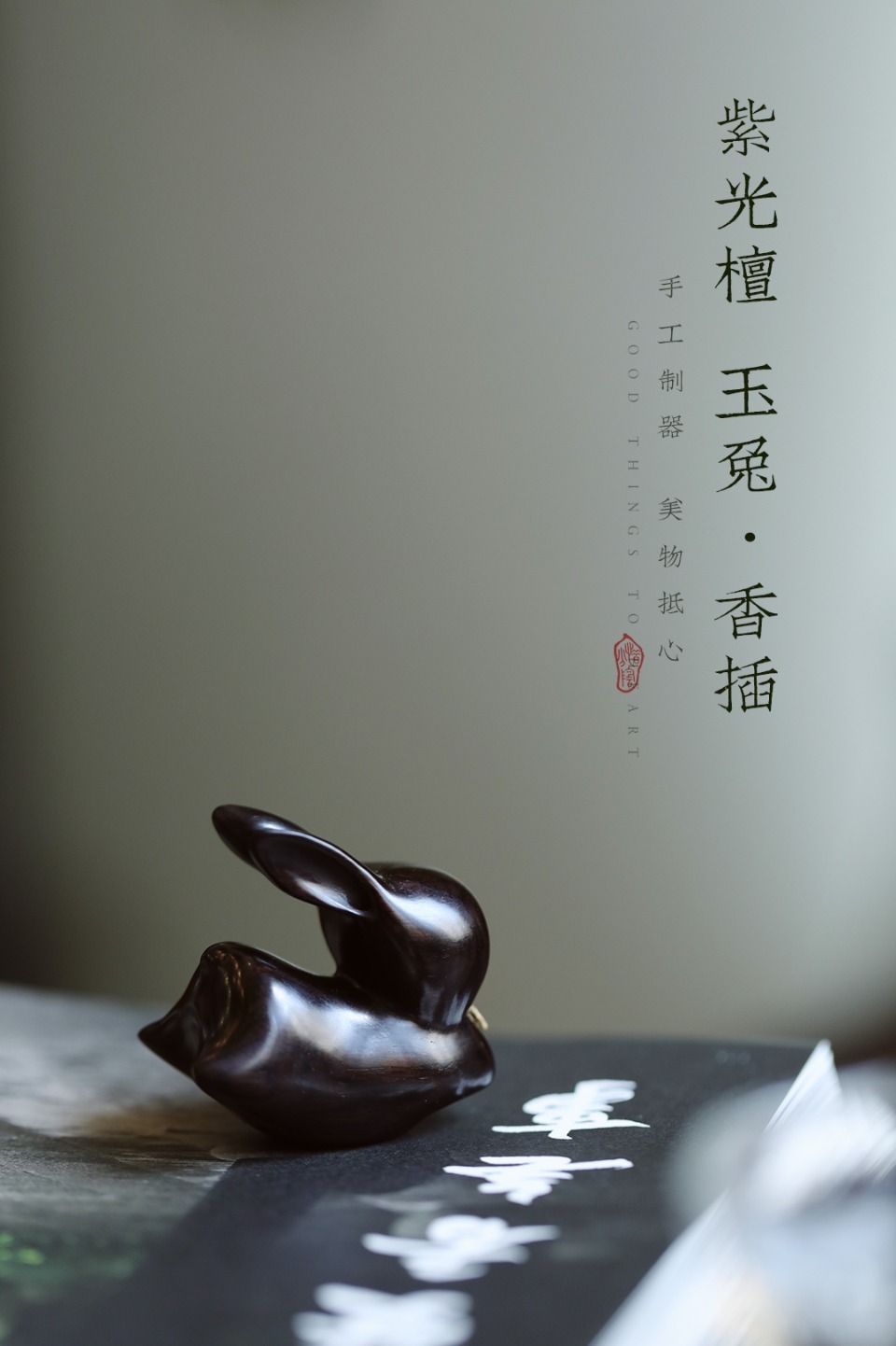 紫光檀【玉兔】香插品茗闻香,由他作伴,玉兔献香。44*23*38mm 重21g