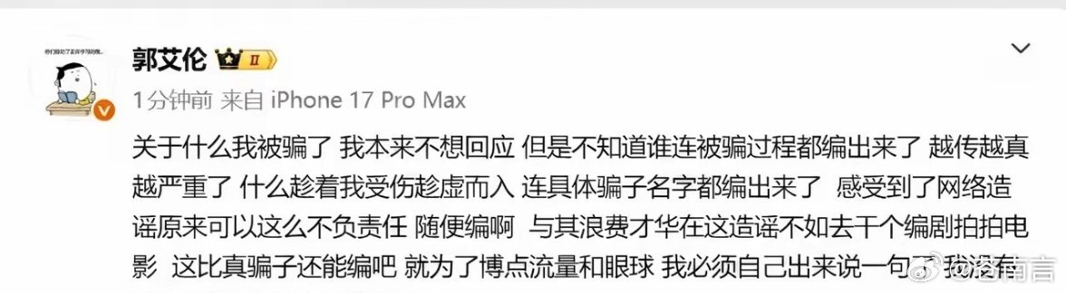 郭艾伦否认被骗熟悉郭艾伦的球迷都知道,他向来是直来直去的性子,有啥说啥,从来不来虚的。这次能逼得他专门发文回应,可想而知这些谣言已经离谱到什么地步了。都说造谣一张嘴,辟谣跑断腿,造谣的人敲几下键盘,就能给当事人造成天大的麻烦,成本低到离谱,实在是毫无底线。不少球迷看完也纷纷力挺郭艾伦,一方面是彻底放心了他没出事,另一方面也都在怒骂那些造谣博流量的人,真的是为了热度什么都敢编。