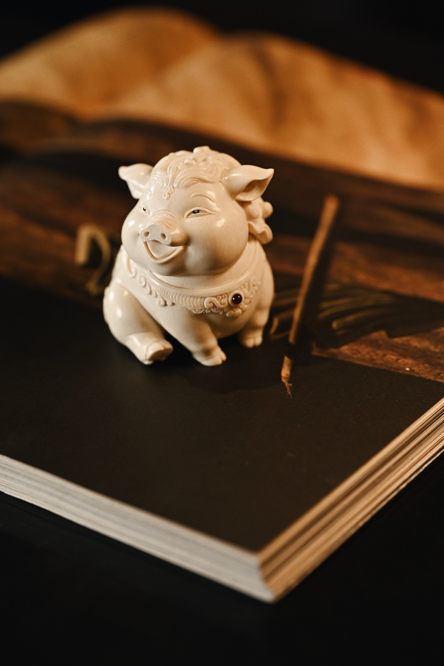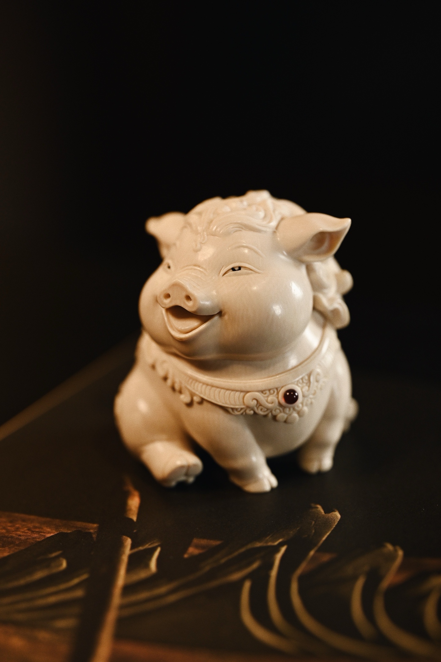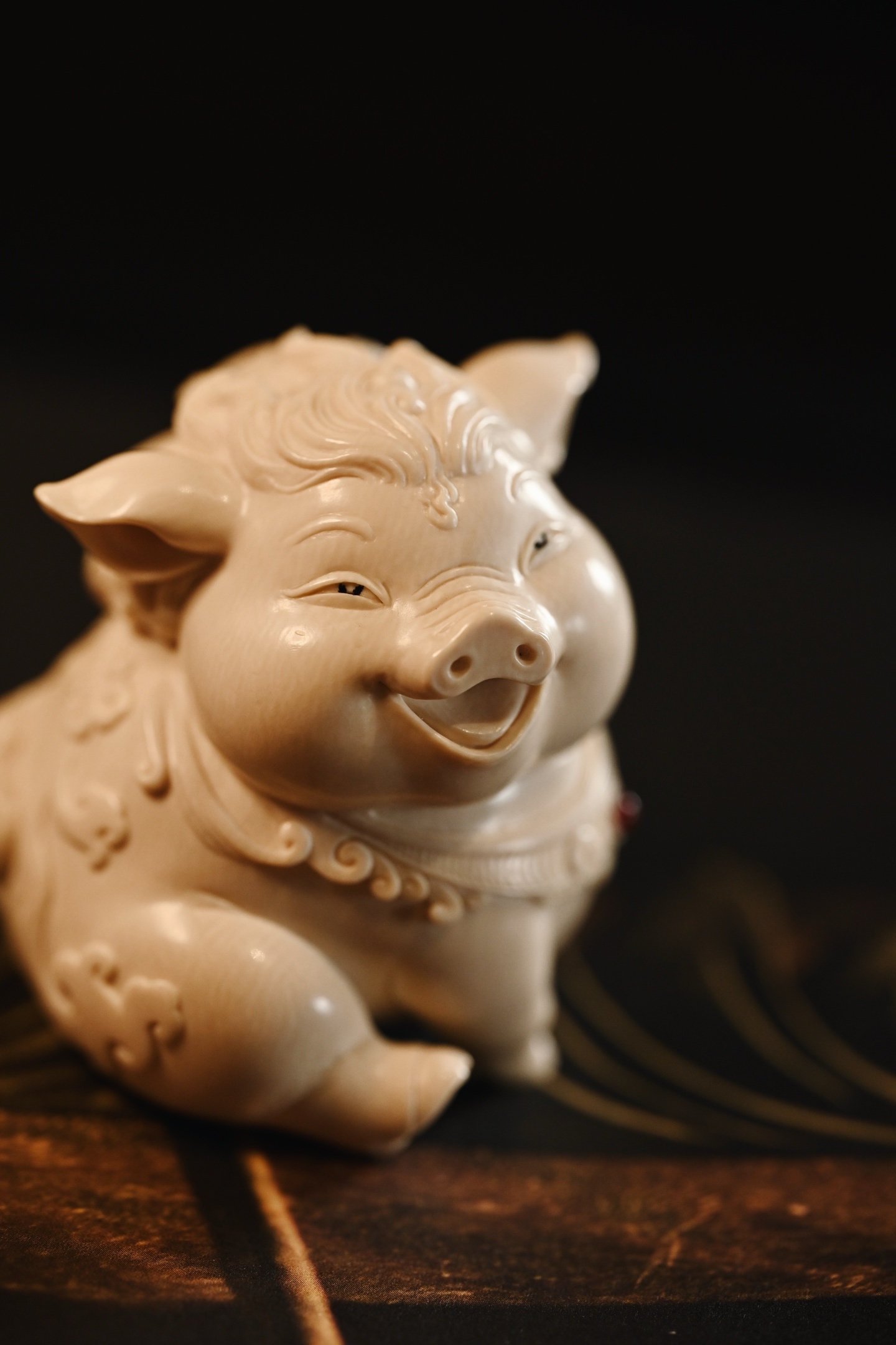 猛犸 | 福猪猪雕刻细腻生动,福猪体态丰腴圆润,憨态可掬,笑口大开,眉眼弯成新月