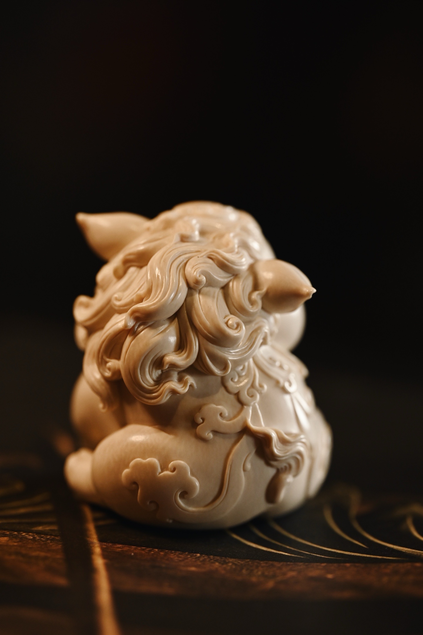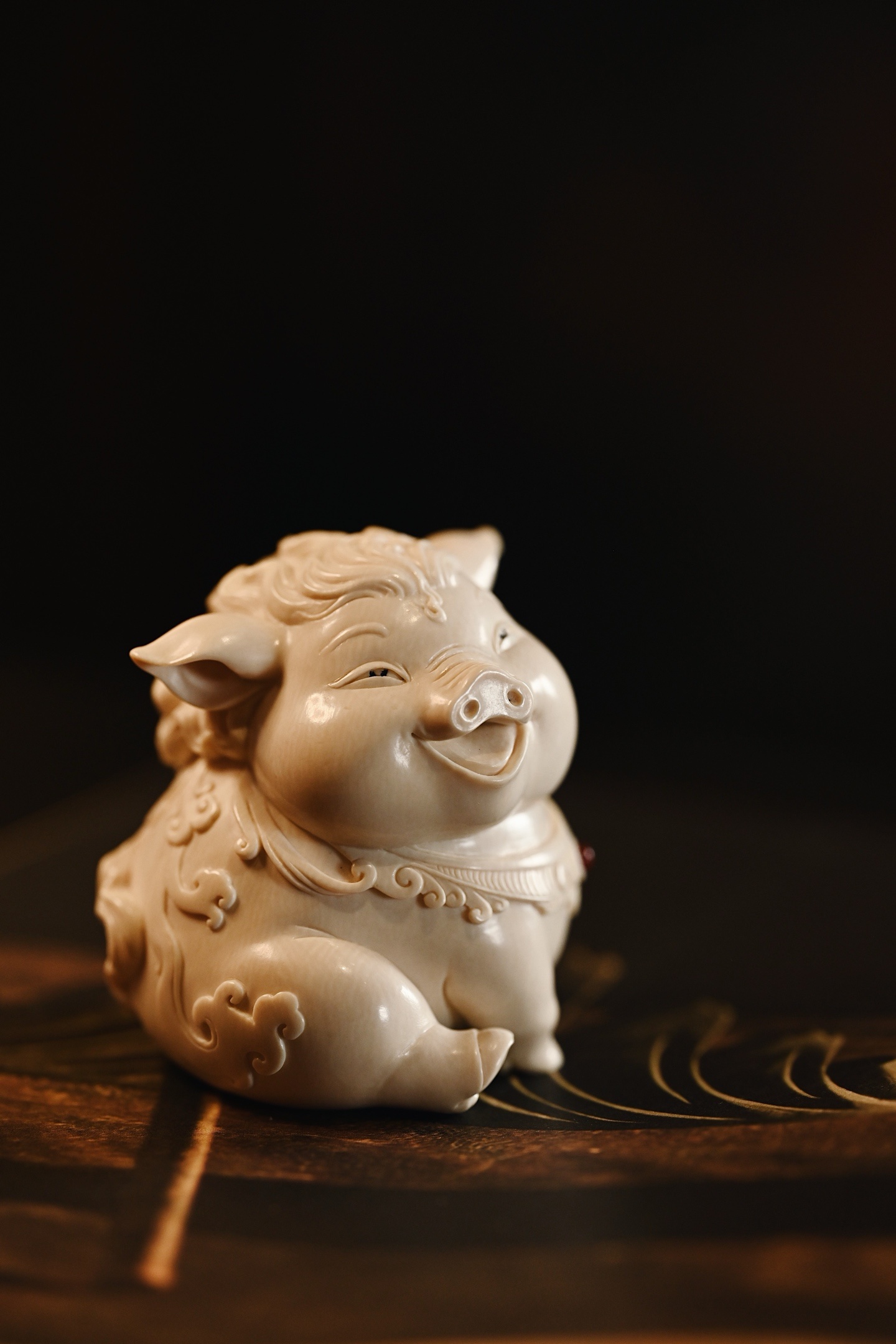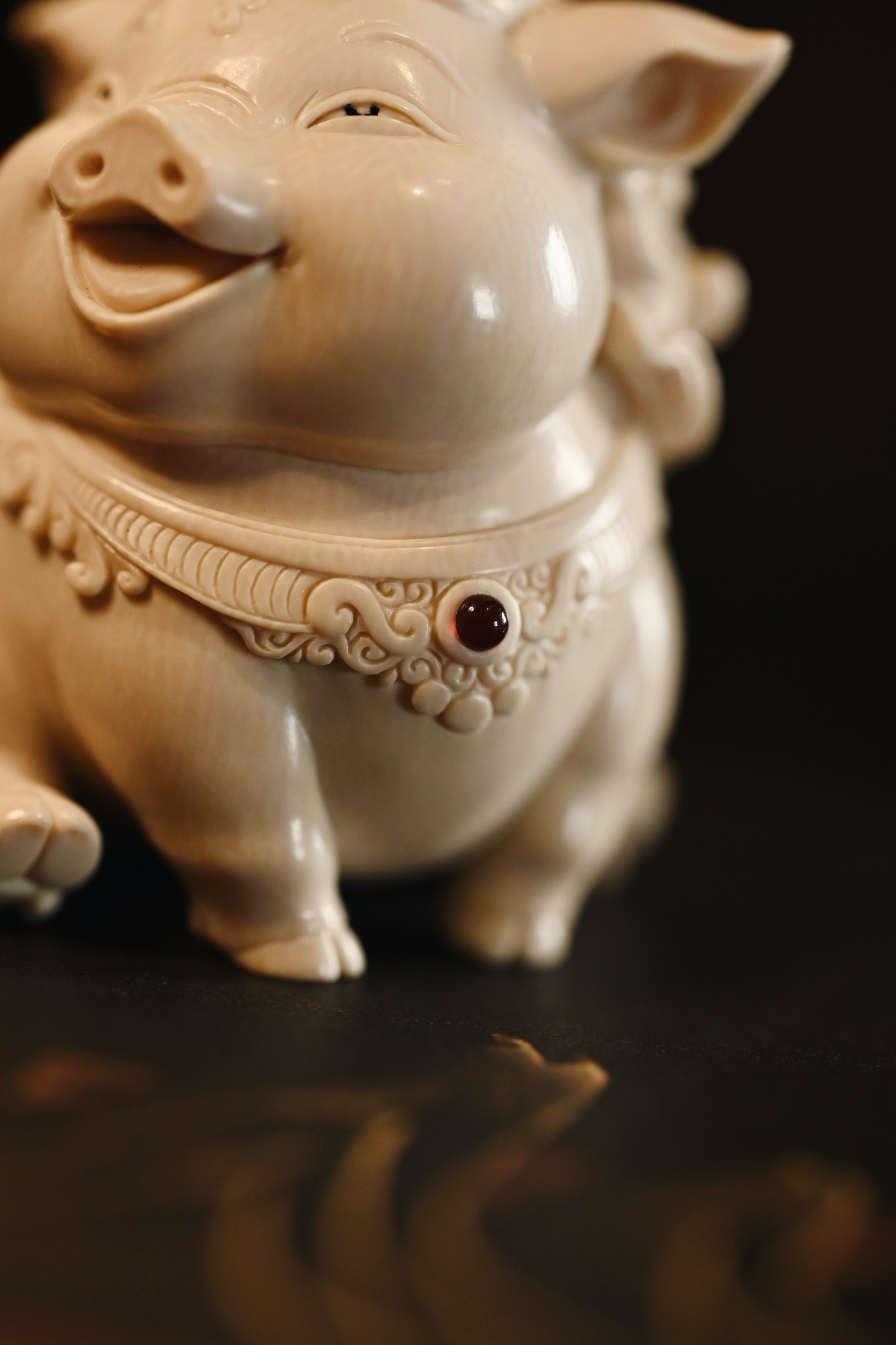 雕刻细腻生动,福猪体态丰腴圆润,憨态可掬,笑口大开,眉眼弯成新月,尽显“福运满满、诸事顺遂”的吉祥之气。