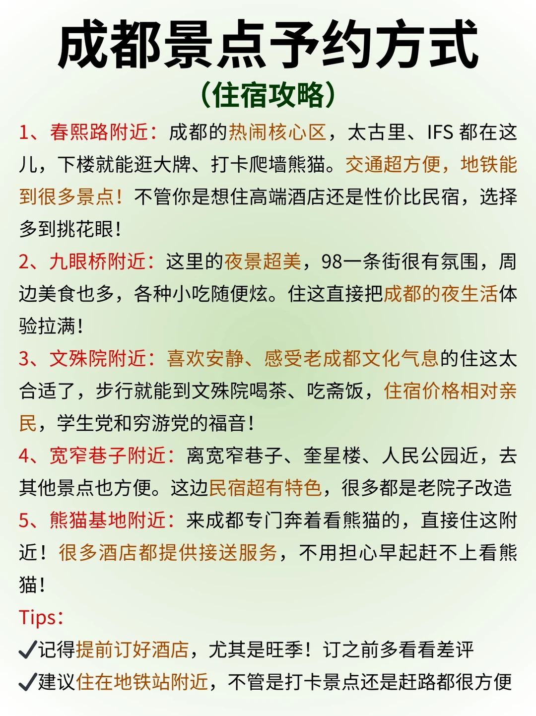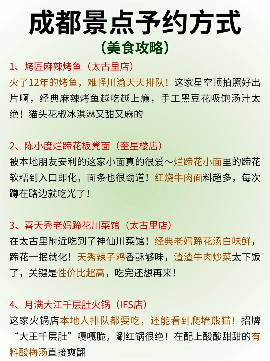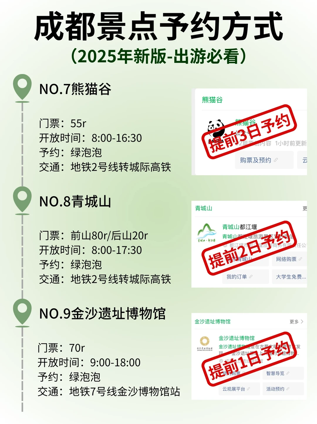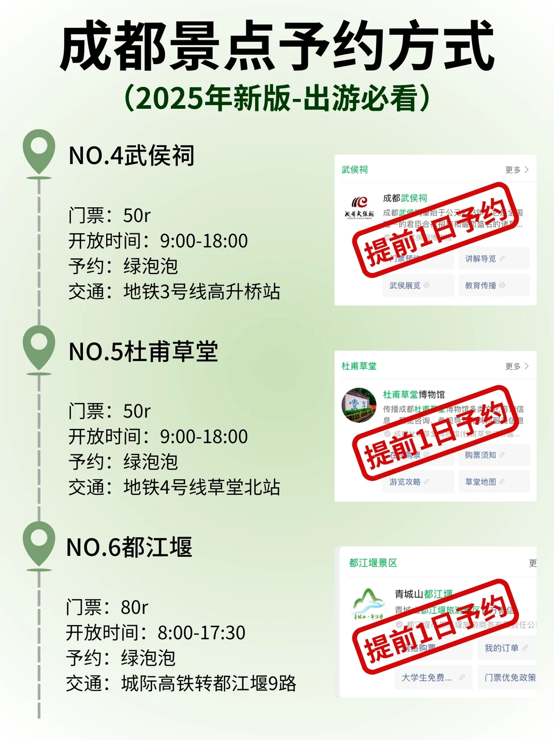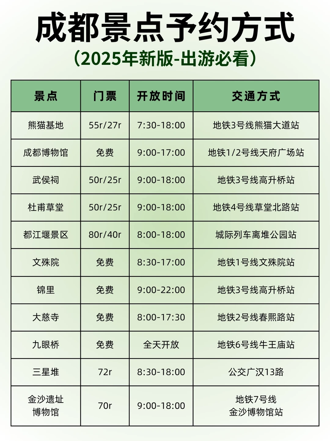 ✔️建议早上打卡的景点:熊猫基地、文殊院、大慈寺、人民公园、东郊记忆、春熙路、杜甫草堂、都江堰