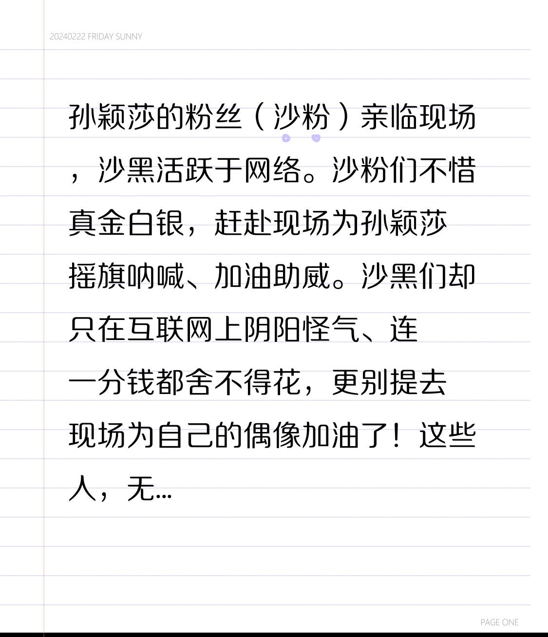 孙颖莎的粉丝(沙粉)亲临比赛现场,而沙黑则活跃于网络。沙粉们不惜花费真金白银,奔赴现场为孙颖莎呐喊助威。沙黑们却只在互联网上冷嘲热讽,连一分钱都不愿掏,更别说去现场为自己所谓的偶像加油了!