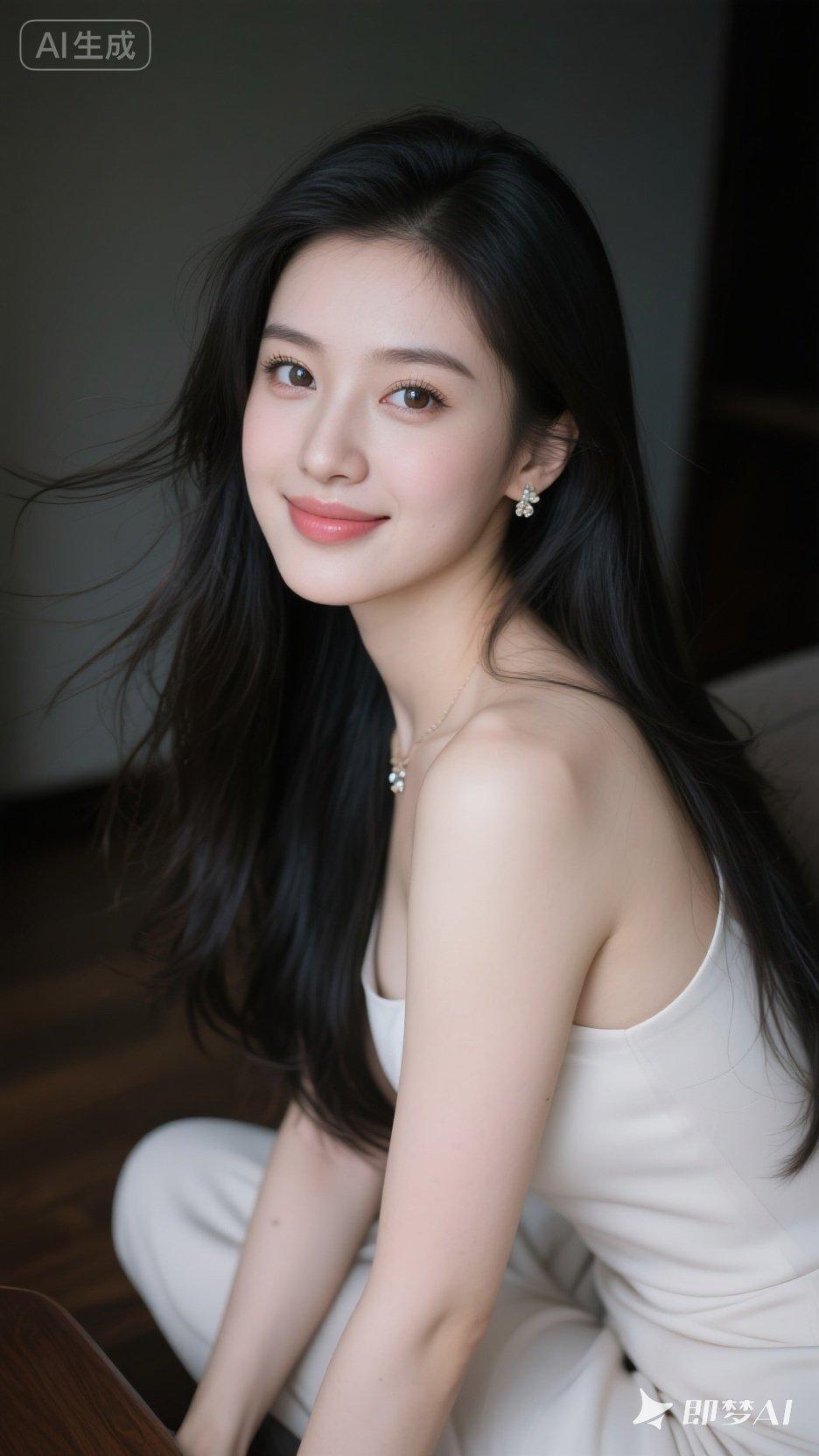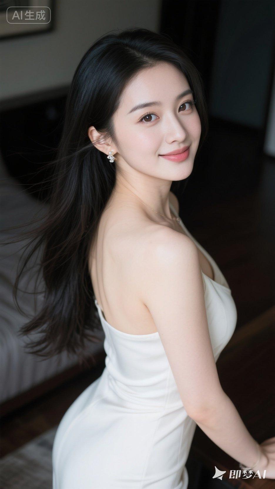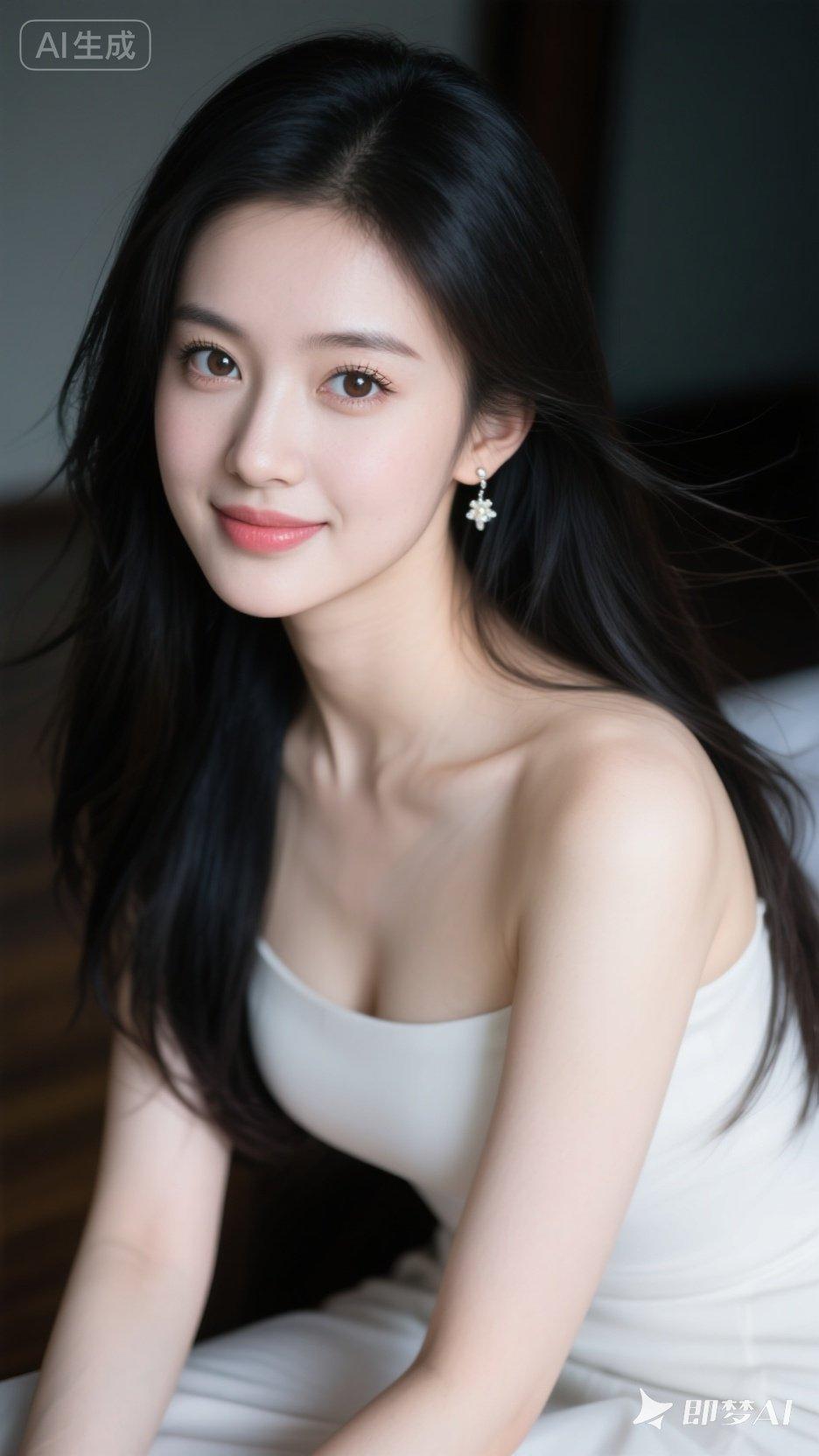 温柔甜美的少女,梦幻的白色纱裙,花饰点缀,宛如童话中的公主。