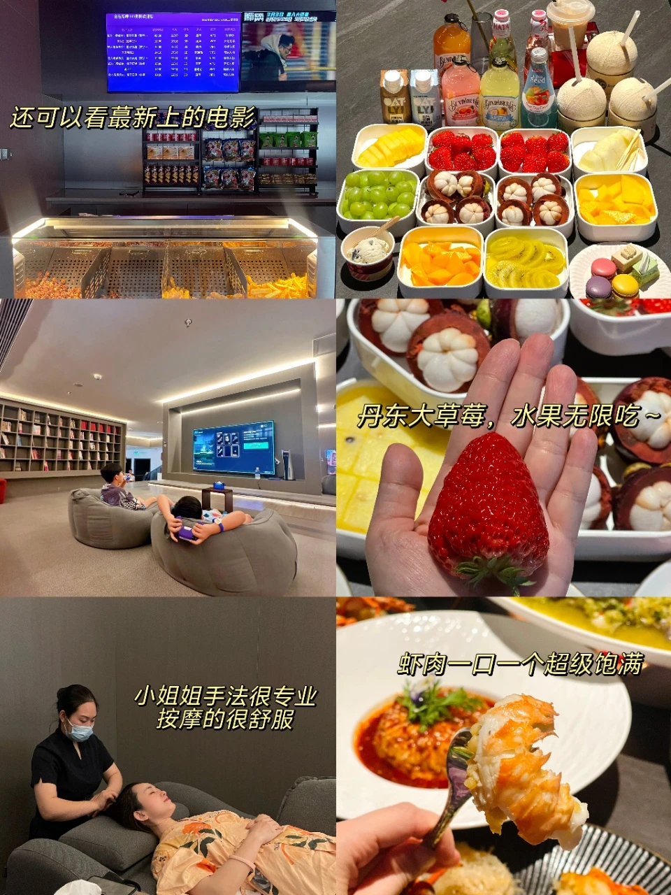 📍金色湖畔・温泉潮玩生活馆:重庆特色汤泉住宿,就在市中心离地铁很近,榴莲、4A山竹等水果可以随意吃!超值