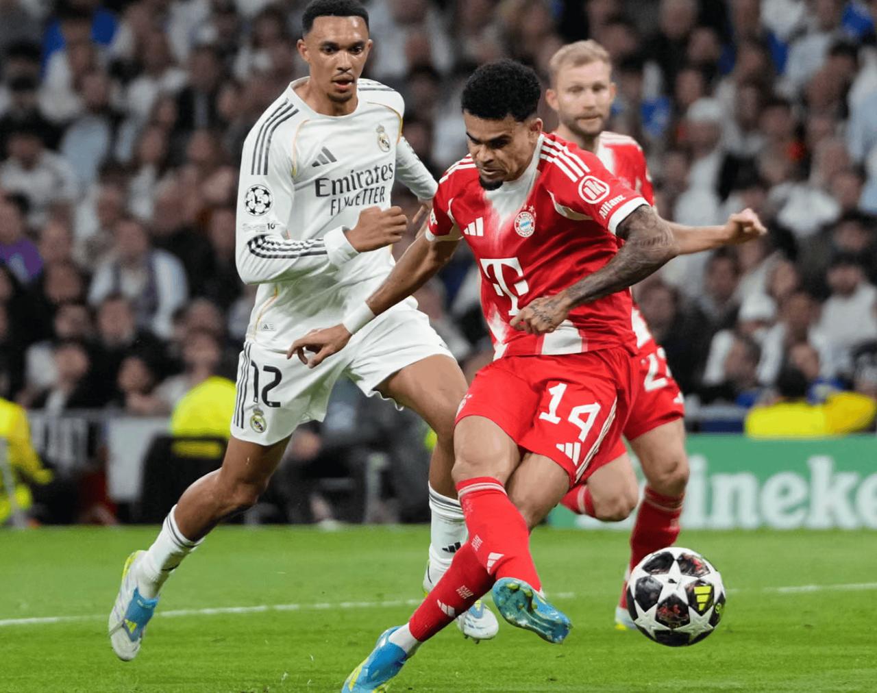 一场焦点大战拉开序幕,两队攻防转换格外犀利,轮番造险,如此节奏真是相当精彩,各有良机,可惜都没能把握。直到第41分钟拜仁兑现机会,格纳布里连线禁区插上的迪亚斯推射球进打破平衡。皇马的反击极具威胁,只是想要打穿也不太容易,上半场暂时0-1落后。
