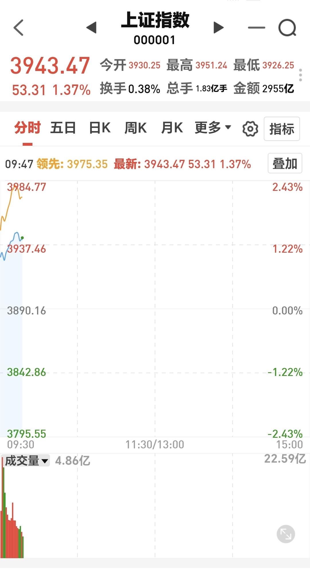 开盘以后指数小幅度震荡向上,盘中最高3951点,并没有能够突破3955点,还是在3852点至3955点之间震荡,只要没有能够突破3955点,就还是处于震荡状态中,只是按照现在的位置看,突破3955点的可能性,大于跌破3852点的可能性。