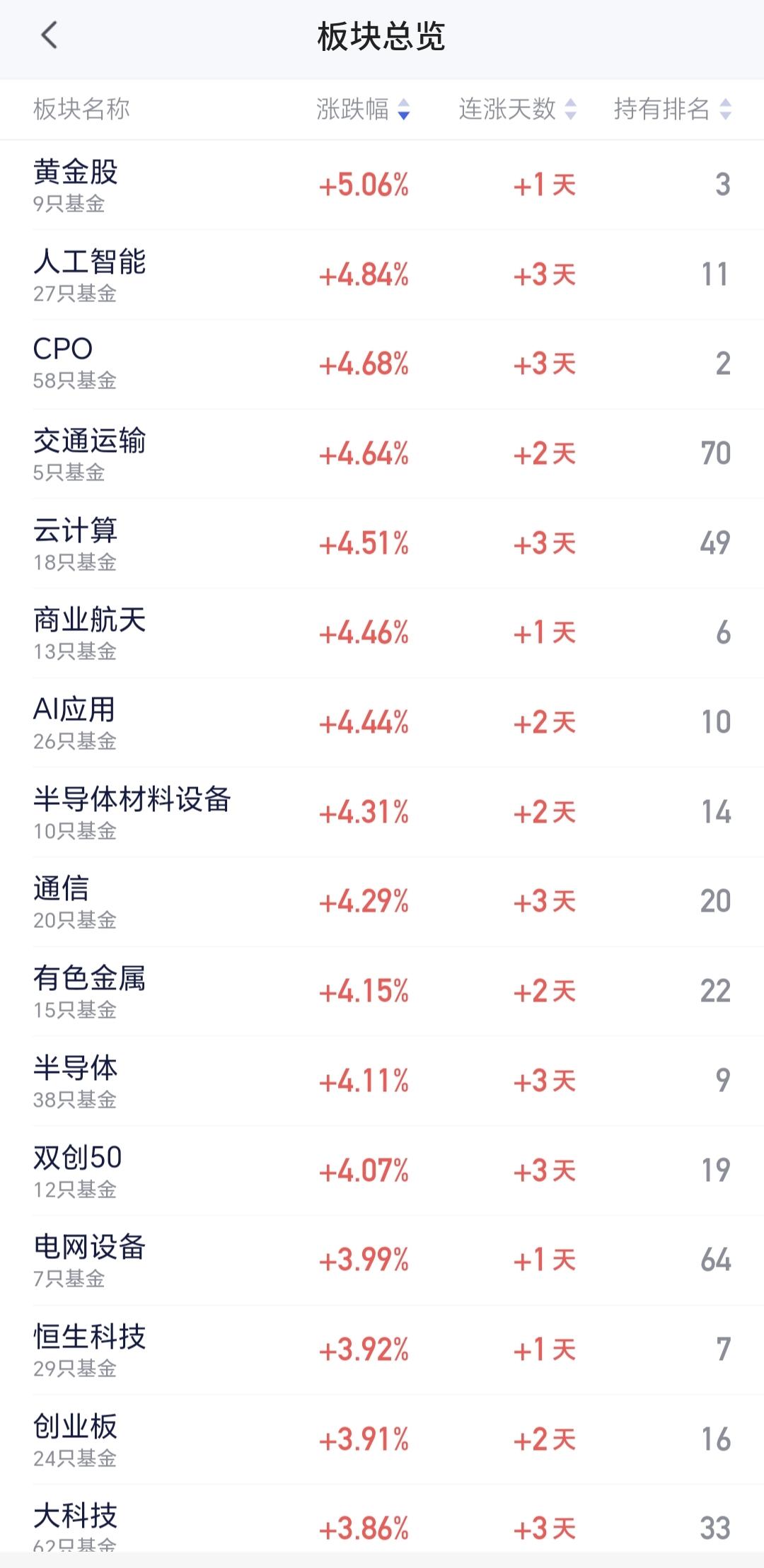 Cpo板块今天上涨幅度比较大,现在盘中估值上涨了4.68%,是连续第三个交易日上涨,持有人数在所有板块当中排名第二位。