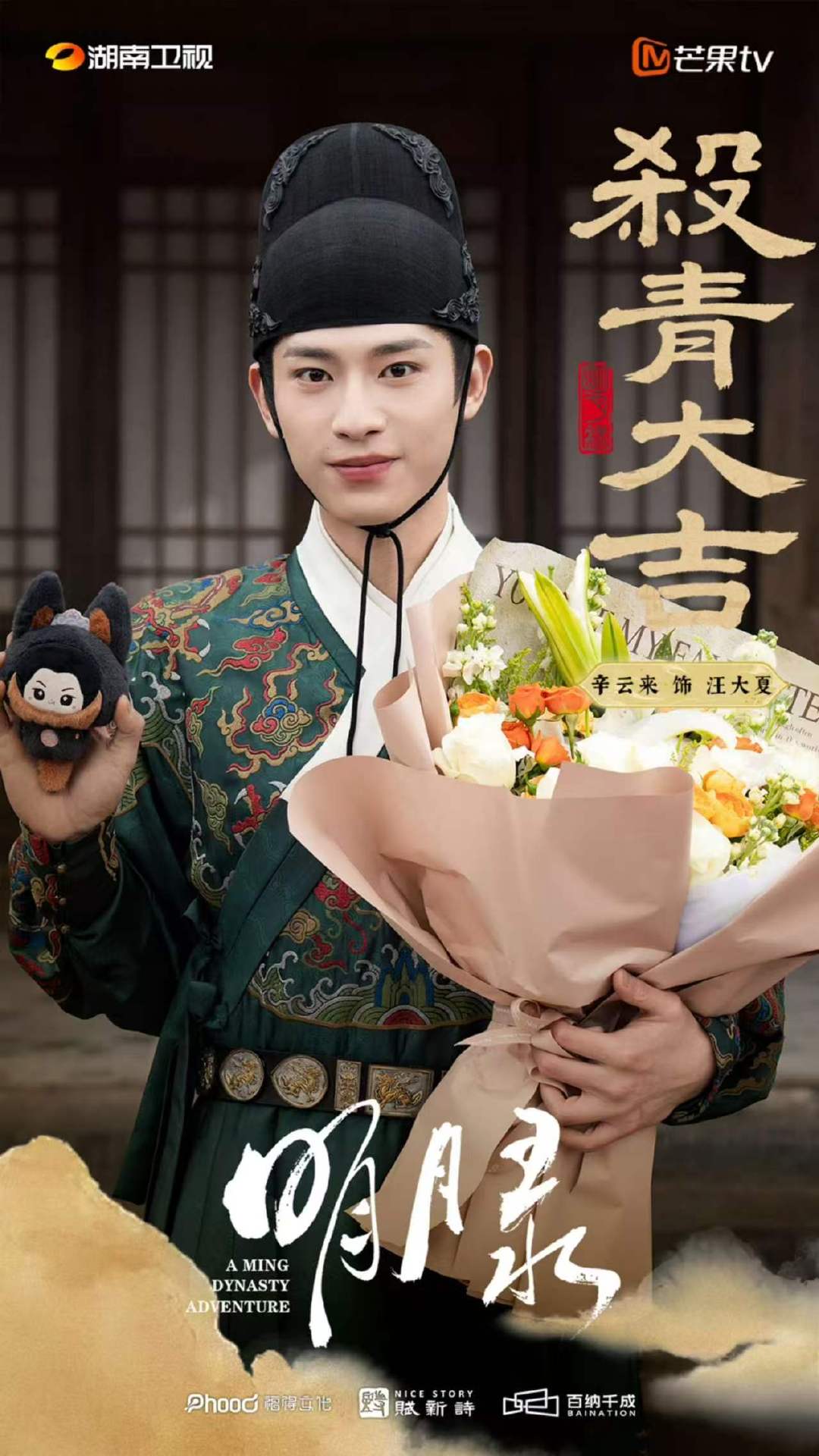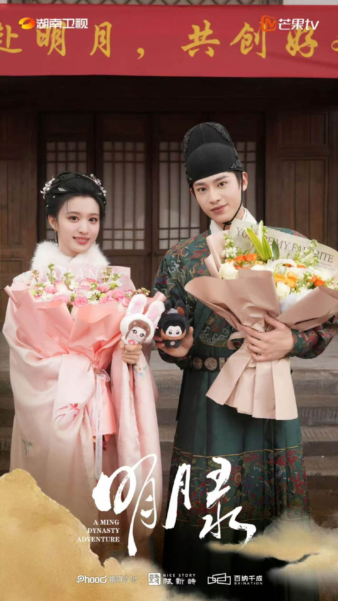 王楚然辛云来捧花照王楚然辛云来杀青合照 王楚然辛云来新剧《明月录》官宣杀青,杀青