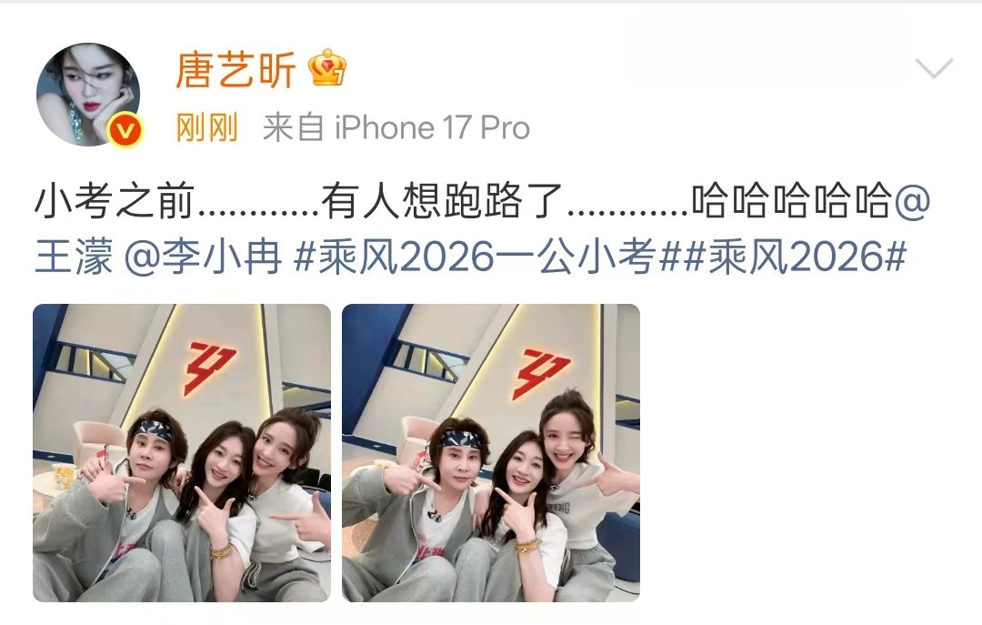 唐艺昕发了李小冉王濛合照唐艺昕说小考之前有人想跑路唐艺昕发了李小冉王濛合照,说小考之前有人想跑路,哈哈哈严重怀疑是王濛!!