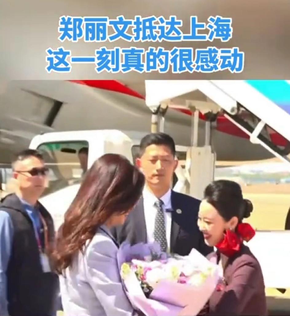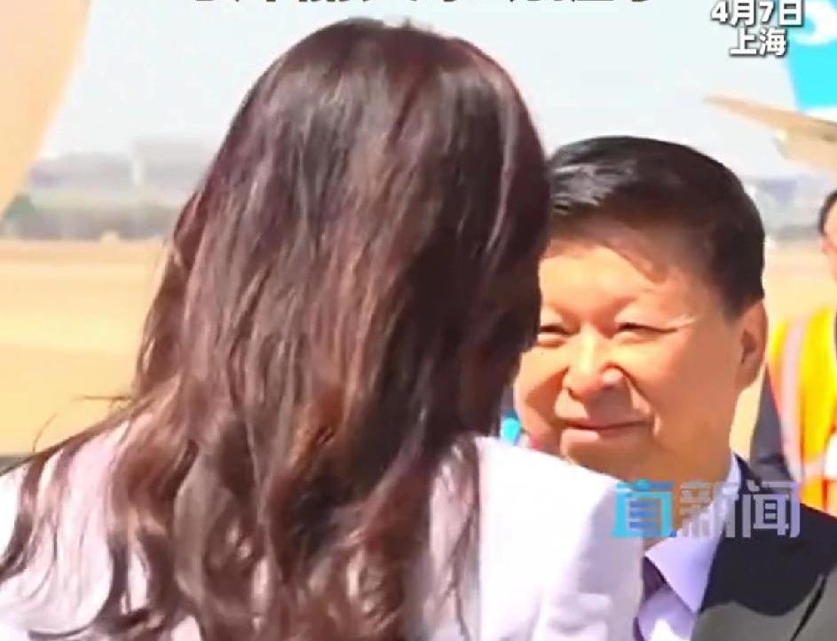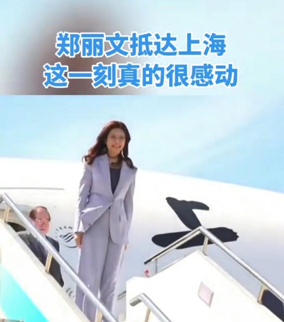 昨日抵达上海虹桥机场,她穿着一身淡紫色套装。她好像很喜欢单手插兜,之前在电视上也看到过。她在下飞机的过程中单手插兜。后来有点拘谨,回到祖国的怀抱,紧张又兴奋,她用手捋了捋头发。下机的时候有礼仪小姐姐送上一大束鲜花,她热情的双手接过。宋先生亲自到机场接机与之握手。这时她把鲜花又重新还给了礼仪小姐。从背后看到她衣服上有折痕。可能路途比较短,也没来得及在车上换衣服。今天她抵达了南京,参观了中山陵。接下来还要去往上海和北京。