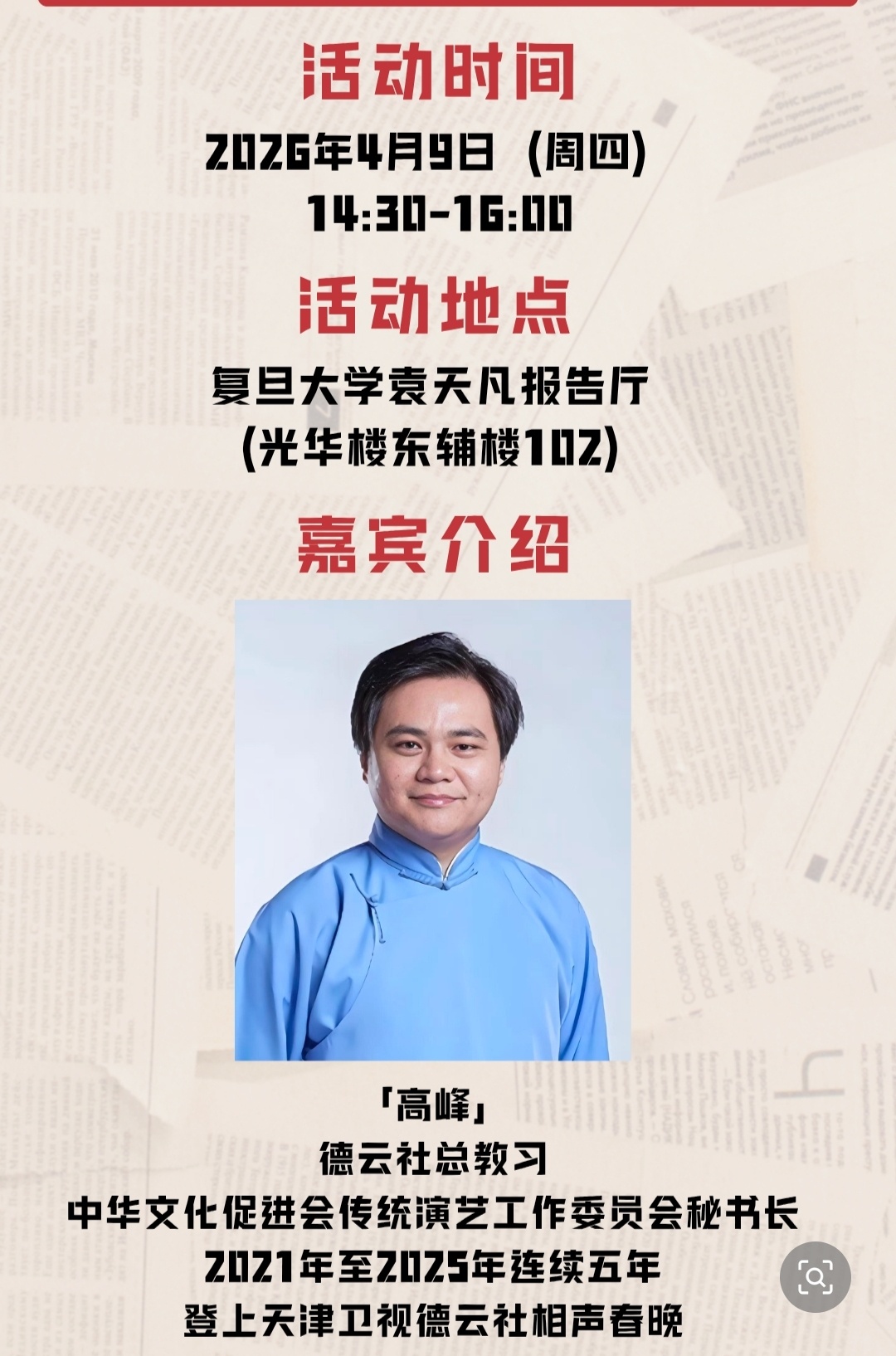 高峰老师来复旦大学了!!!!