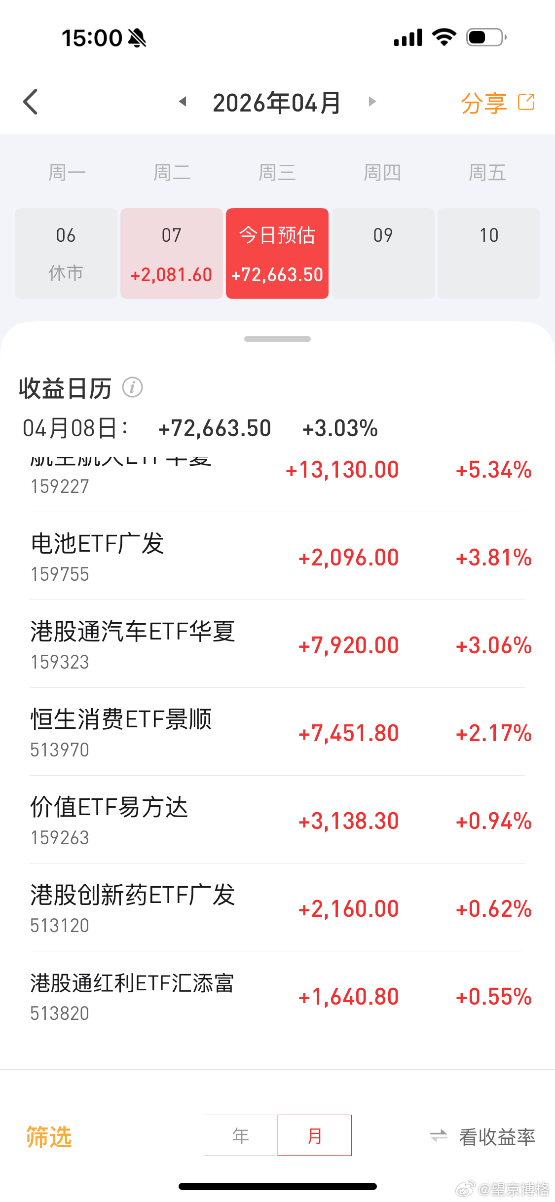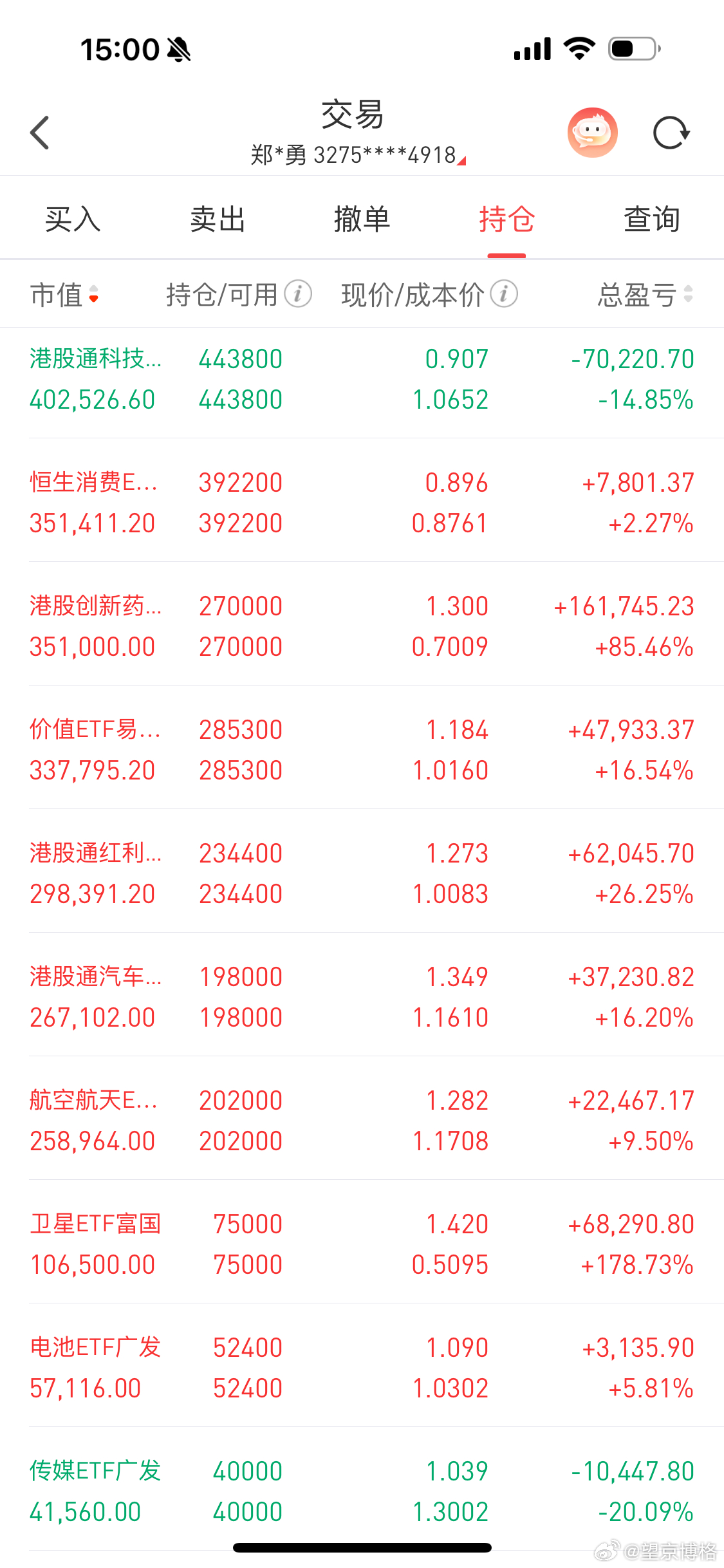 大回血,etf帐户盈利7.3万加上场外帐户今天可能回血突破20万,唯一遗憾是创新