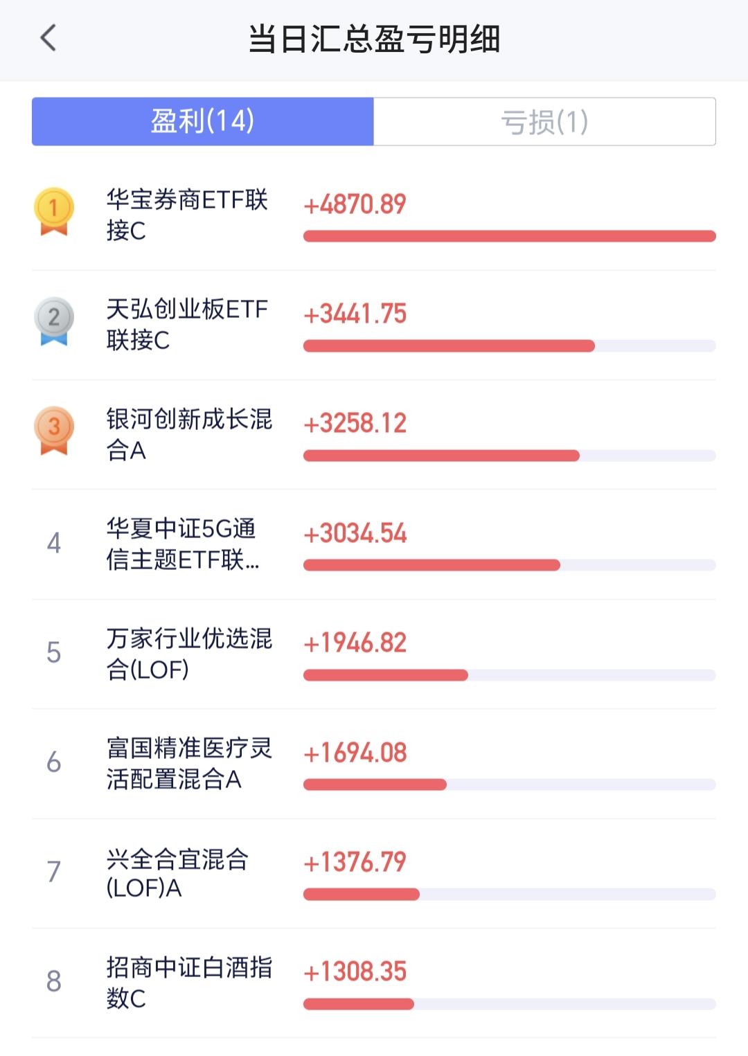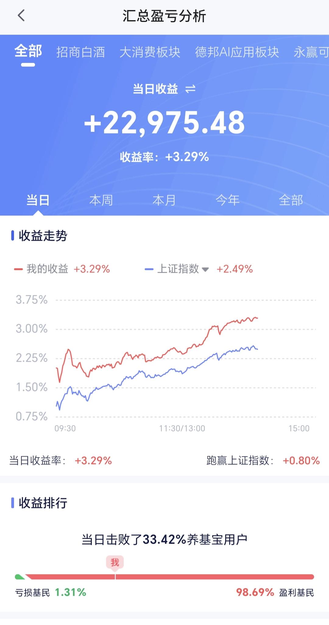 持有基金现在盘中估值上涨了22975元,盈利金额最大的三个板块是:证券板块,创业板指,芯片半导体板块,盈利金额最小的三个板块是:可控核聚变板块,AI应用板块,军工板块。
