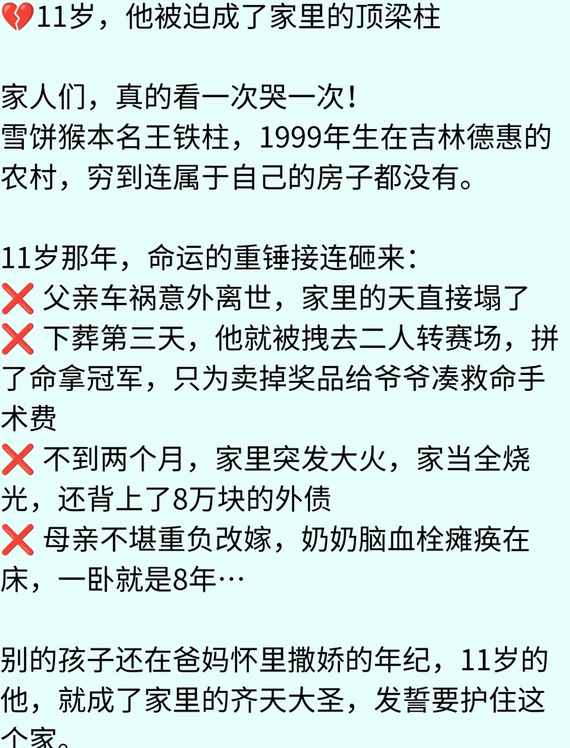 雪饼猴长文回应参加无限超越班从文字来看,张铁柱是一个心思细腻的人也难怪能够把一个经典角色塑造的如此鲜活苦难或许会让人精疲力尽但从某种程度也是将你推向成功的必经之路