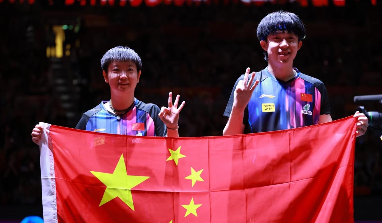 另一次是和王楚钦搭档的世乒赛的三连冠,这次比赛前,孙颖莎和王楚钦没有之前的世乒赛准备得那么充分,但是凭借多年的默契,赛前练一练上去也能打好。