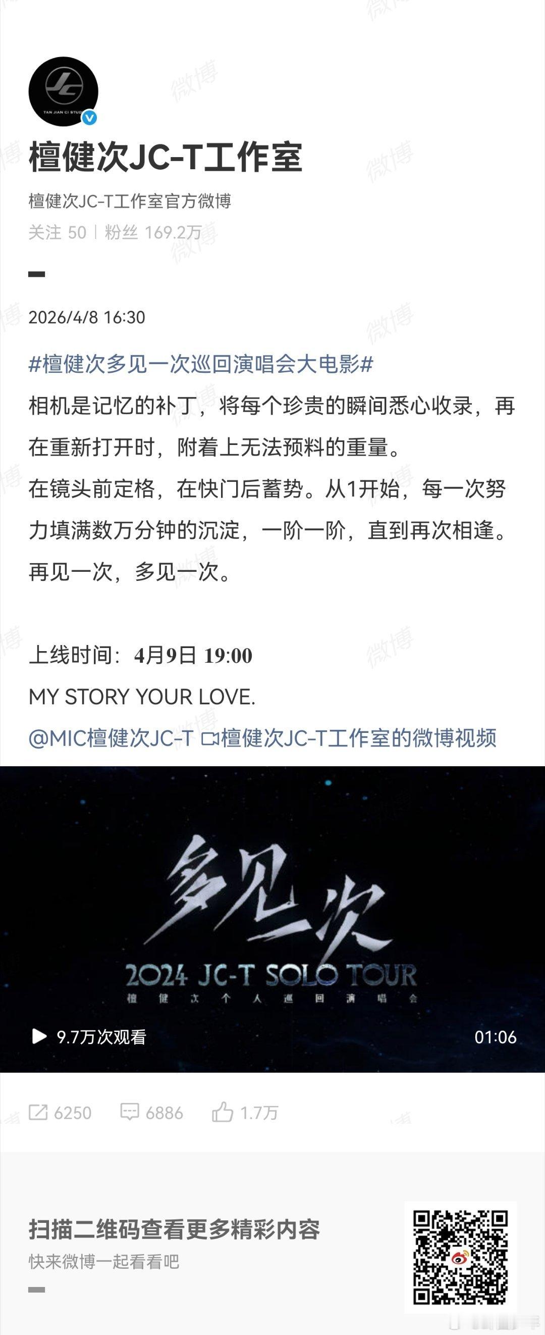 檀健次多见一次演唱会大电影预告檀健次演唱会大电影即将上线明晚就要上线啦,时隔两年