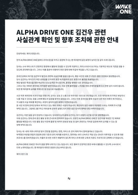wk1公告,金虔佑暂停活动 自我反省短期时间内ALD1以七人体制活动