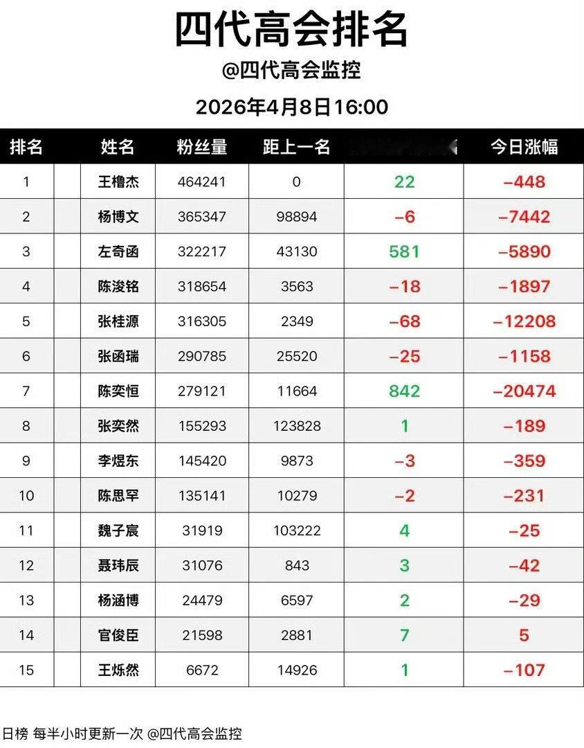 TF四代高会粉丝数关闭 关闭前的数据记录王橹杰 杨博文 左奇函 陈浚铭 张桂源
