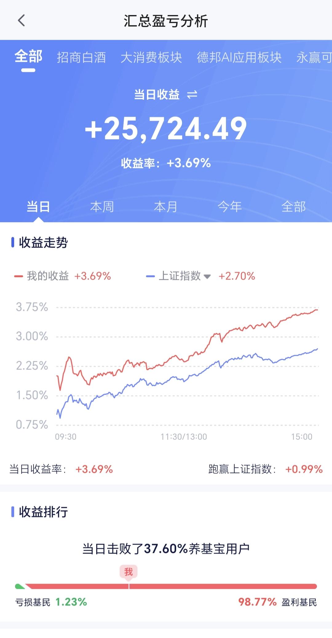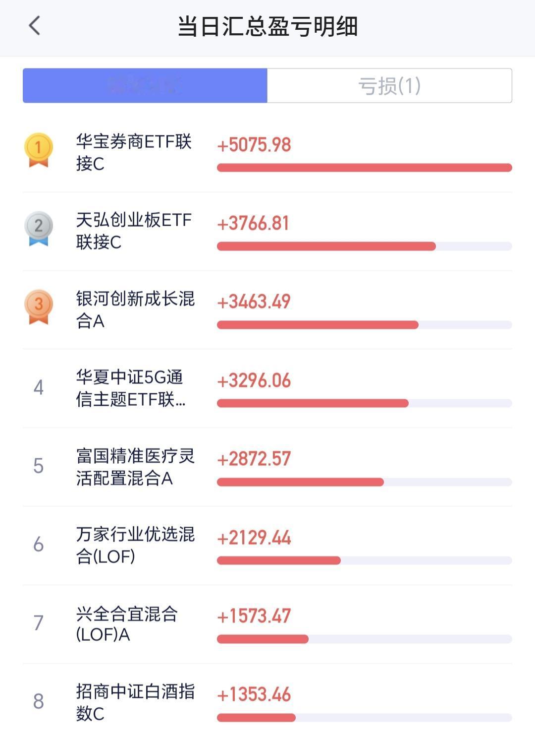 持有基金现在盘中估值上涨了25724元,盈利金额最大的三个板块是:证券板块,创业板指,芯片半导体板块,盈利金额最小的三个板块是:可控核聚变板块,AI应用板块,军工板块。