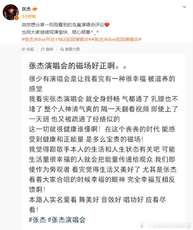 张杰分享网友鸟巢演唱会观后感 网友称:“张杰鸟巢演唱会,是一场梦幻之旅,歌声绕梁,让我忘却一切烦恼,沉浸其中!”祝观演顺心~张杰