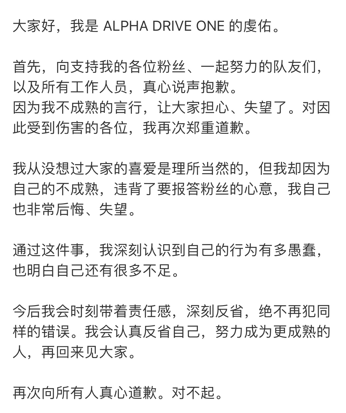 金虔佑手写道歉信,会带着责任感深刻反省绝不再犯同样的错误,努力更成熟