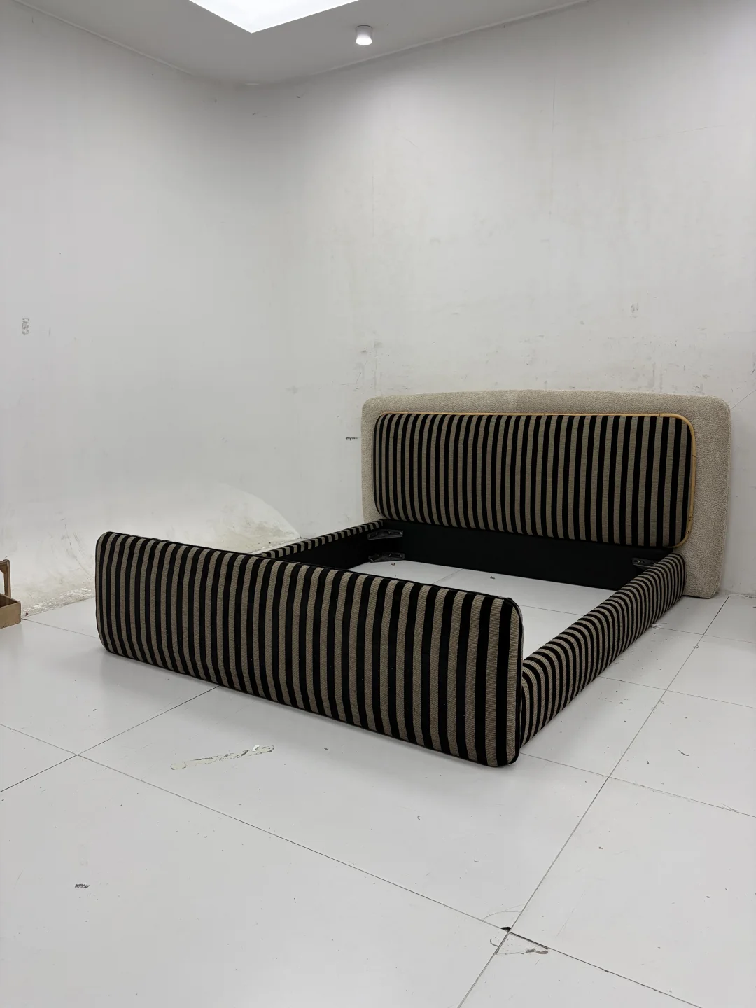2. 材质对话:床体的硬朗线条与软包的细腻肌理形成对比,搭配无主灯设计的磁吸轨道灯,光影层次感瞬间拉满。💡