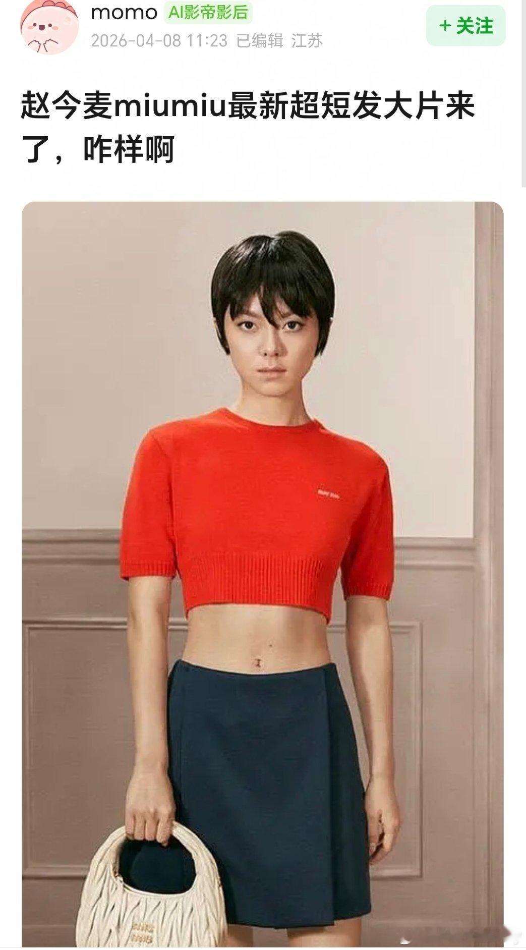 赵今麦时尚感也太虐了吧,miumiu给她拍的这组短发商务大片,被网友吐槽像难民,