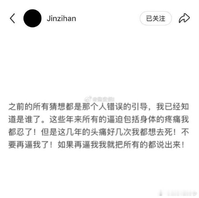 金子涵 再逼我就把所有的都说出来最近,“金子涵 再逼我就把所有的都说出来” 这句话在网络上引起了不小的波澜。金子涵,这个在娱乐圈崭露头角的年轻艺人,她的这一声 “呐喊”,仿佛一颗投入平静湖面的石子,激起了层层涟漪。金子涵大家并不陌生,她凭借甜美的外貌和出色的舞蹈实力,在《青春有你 2》中收获了不少粉丝。她就像一颗闪闪发光的新星,在娱乐圈的舞台上努力绽放着自己的光芒。然而,这一句 “再逼我就把所有的都说出来”,却让大家不禁猜测,她的背后是不是藏着什么不为人知的故事呢?在娱乐圈这个复杂的大环境里,明星们面临着各种各样的压力。有来自工作的,比如高强度的排练、频繁的演出;也有来自舆论的,粉丝的期待、媒体的关注,稍有不慎就可能陷入舆论的漩涡。金子涵这看似 “愤怒” 的话语,或许正是她在长期压力下的一次爆发。从心理学的角度来看,当一个人长期处于压抑状态时,就像一个不断被充气的气球,总有一天会承受不住压力而爆炸。金子涵的这句 “再逼我就把所有的都说出来”,很可能是她内心压抑已久的情绪的宣泄。也许她在娱乐圈遇到了一些难以言说的困境,比如不公平的待遇、恶意的诋毁等等。有专家指出,娱乐圈的竞争异常激烈,明星们的心理健康问题不容忽视。据相关调查显示,超过半数的艺人都曾表示自己有过不同程度的心理压力和焦虑情绪。金子涵的这一发声,也给我们敲响了警钟,我们应该更加关注明星们的心理健康。当然,我们也不能仅凭这一句话就盲目猜测。也许这只是她在某个特定情境下的一句气话,但无论如何,这都反映出娱乐圈背后可能存在的一些问题。“金子涵 再逼我就把所有的都说出来” 这句话,就像一个神秘的谜题,引发了我们对娱乐圈背后故事的诸多猜测。它让我们看到了明星们在光环背后可能面临的压力和困境。我们在关注明星们精彩表现的同时,也应该多一些理解和关怀,让他们在娱乐圈这个大舞台上能够更加健康、快乐地发展。希望金子涵能够尽快走出可能存在的阴霾,以更好的状态继续在舞台上绽放光彩。同时,也希望娱乐圈能够更加规范,为艺人们创造一个更加公平、和谐的发展环境。