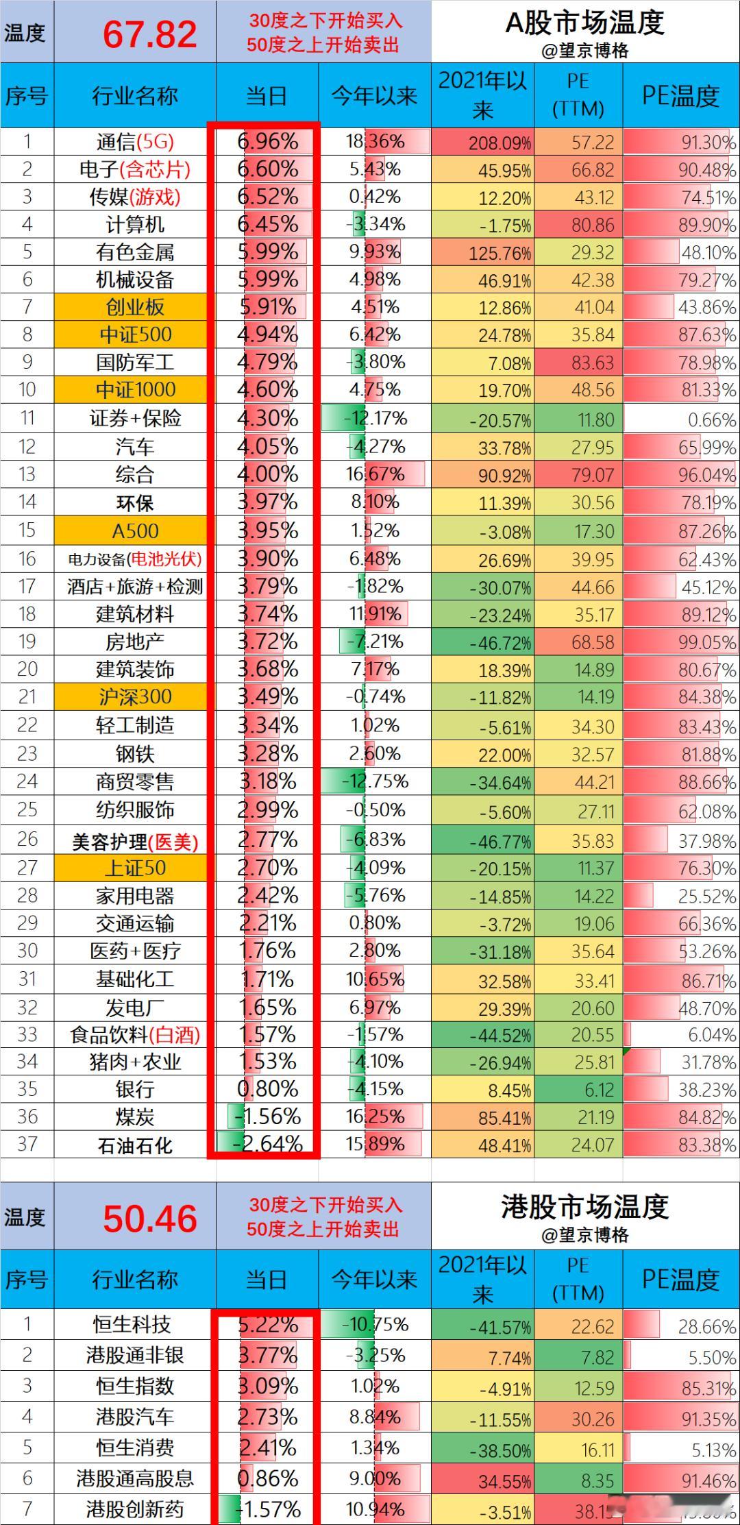 超级大回血聊几句行情和感受:(1)ETF实盘账户,今天盈利+7.3万;(2)某宝实盘账户,今天盈利+13.5万;(3)两个账户,合计预期盈利+20.8万,预估盈亏比例+2.57%。周二盈利+1.5万,周三盈利+20.8万,本周累计盈利+22.3万,今年以来收益翻红了,happy~因为重仓,博格之前一直很久没加仓恒生科技。直到4月2日,港股通假期暂停的前一天,博格私域发车了+3万(含恒生科技的)【安心汉堡】,这也算在大涨前一天“精准加仓了~”间接加仓恒生科技了~2026年4月2日 市场温度PS:私域的高净值活动已经报名满了,大家不用再报名了。今日温度:A股今天67.82度,相比上一个交易日上升+3.00度;港股今天50.46度,相比上一个交易日上升+2.60度;欢迎留言!也感谢大家的点赞与点爱心~ 基金黄金