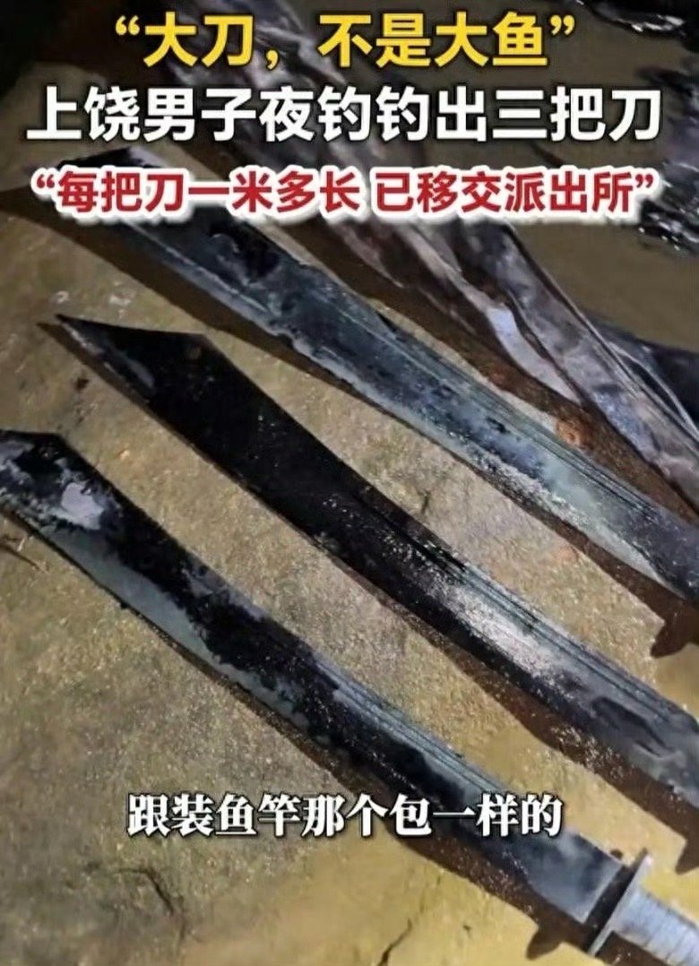 钓鱼竟钓出三把一米长刀!是意外还是隐藏案件?4月6日晚,江西上饶一名男子在河边