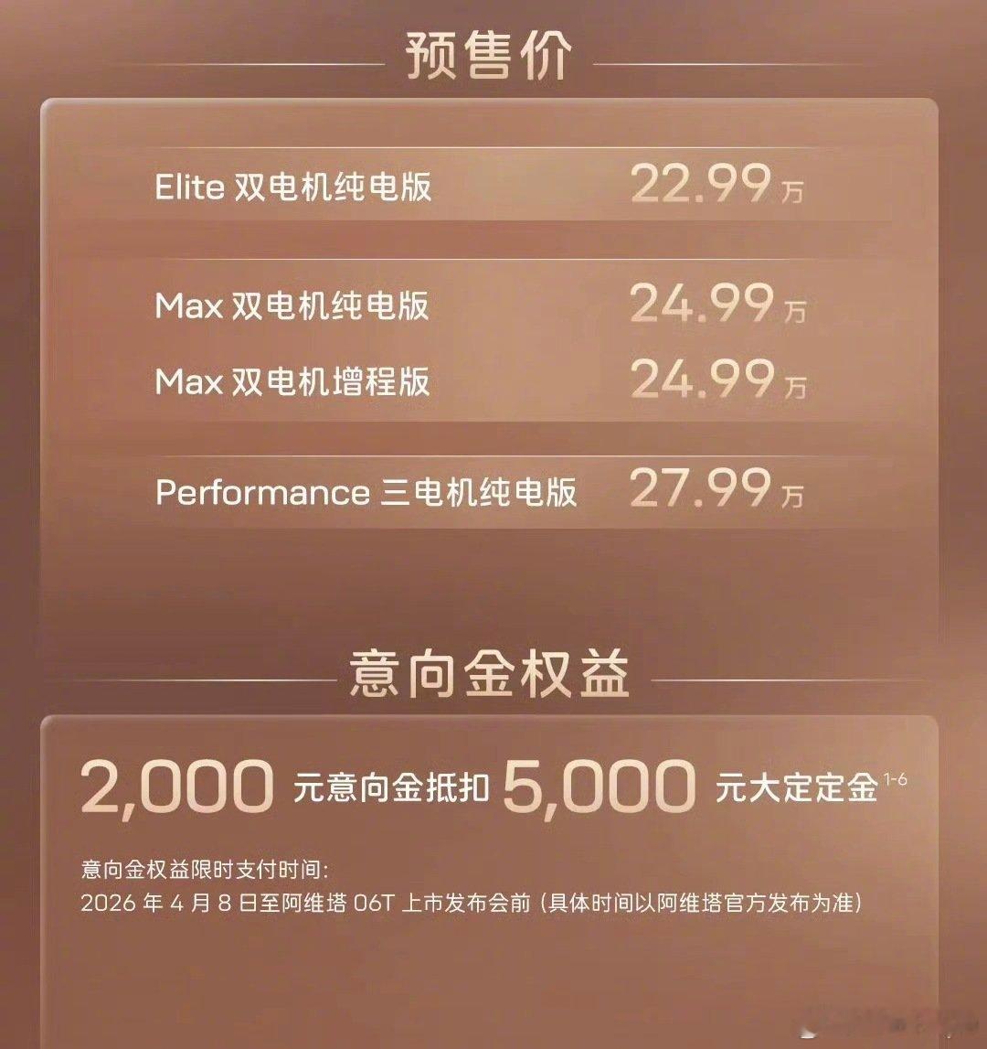 阿维塔06T ¥22.99万-27.99万新阿维塔12纯电 ¥30.39万-43.39万新阿维塔12增程 ¥29.39万-31.39万