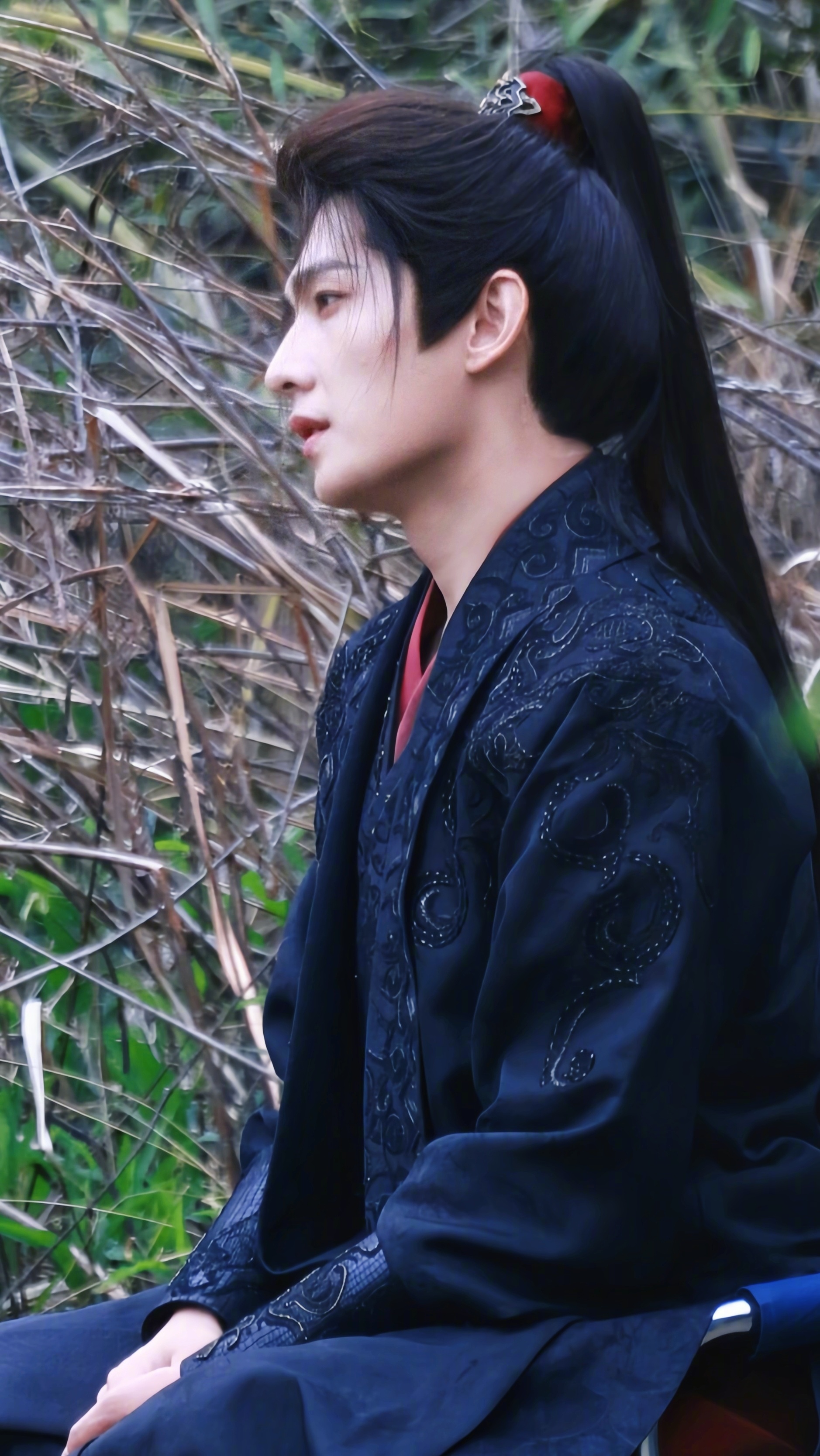 杨洋《不让江山》目前最佳路透造型👀高马尾+红发带+黑戏服的李叱
