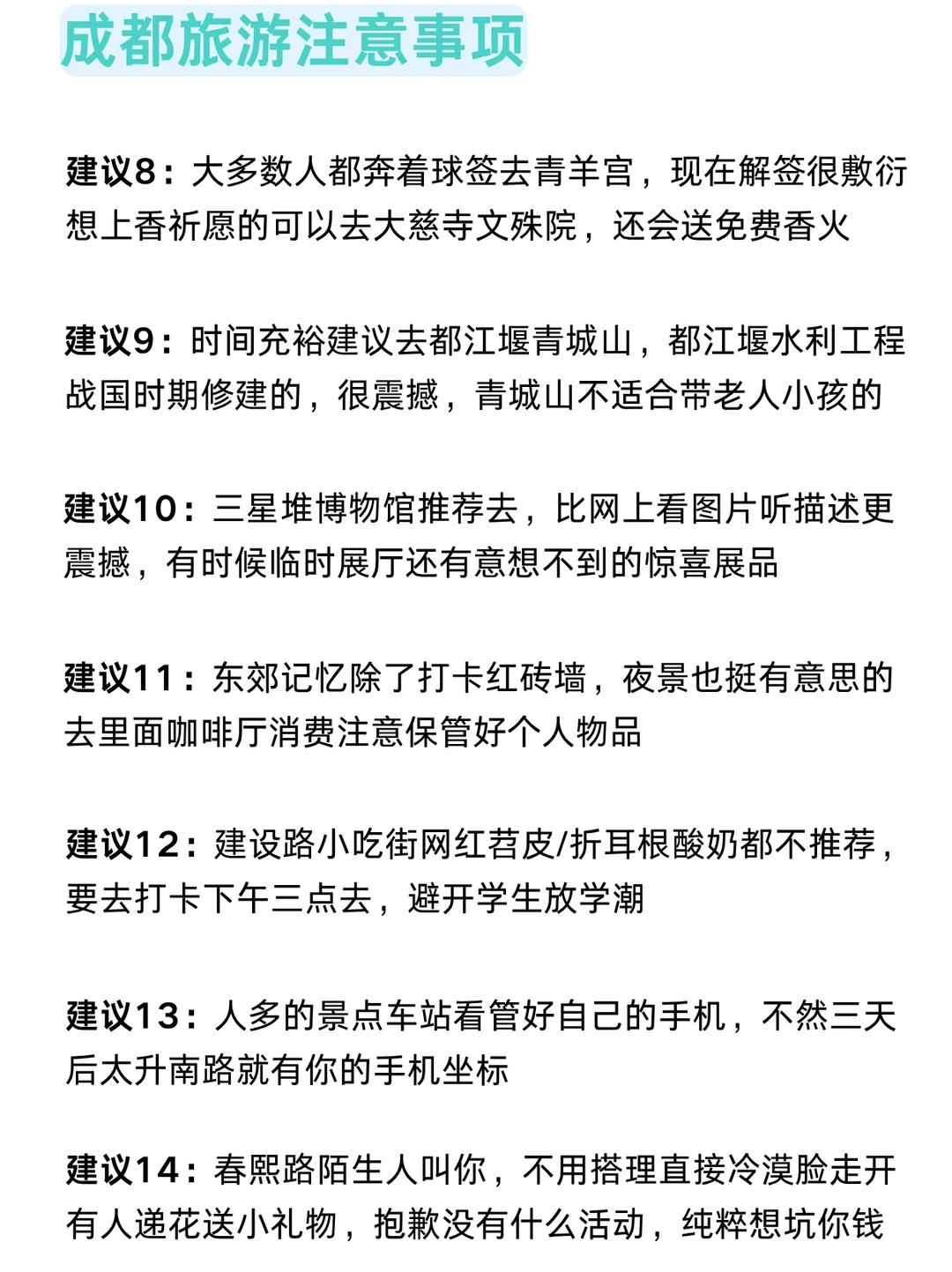 无语死了,来成都前带了很多漂亮小裙裙,结果很多景点都是室外,室外🦟、🐛太多了,早晚还有温差,后面发现还是裤子👖好使。。。
