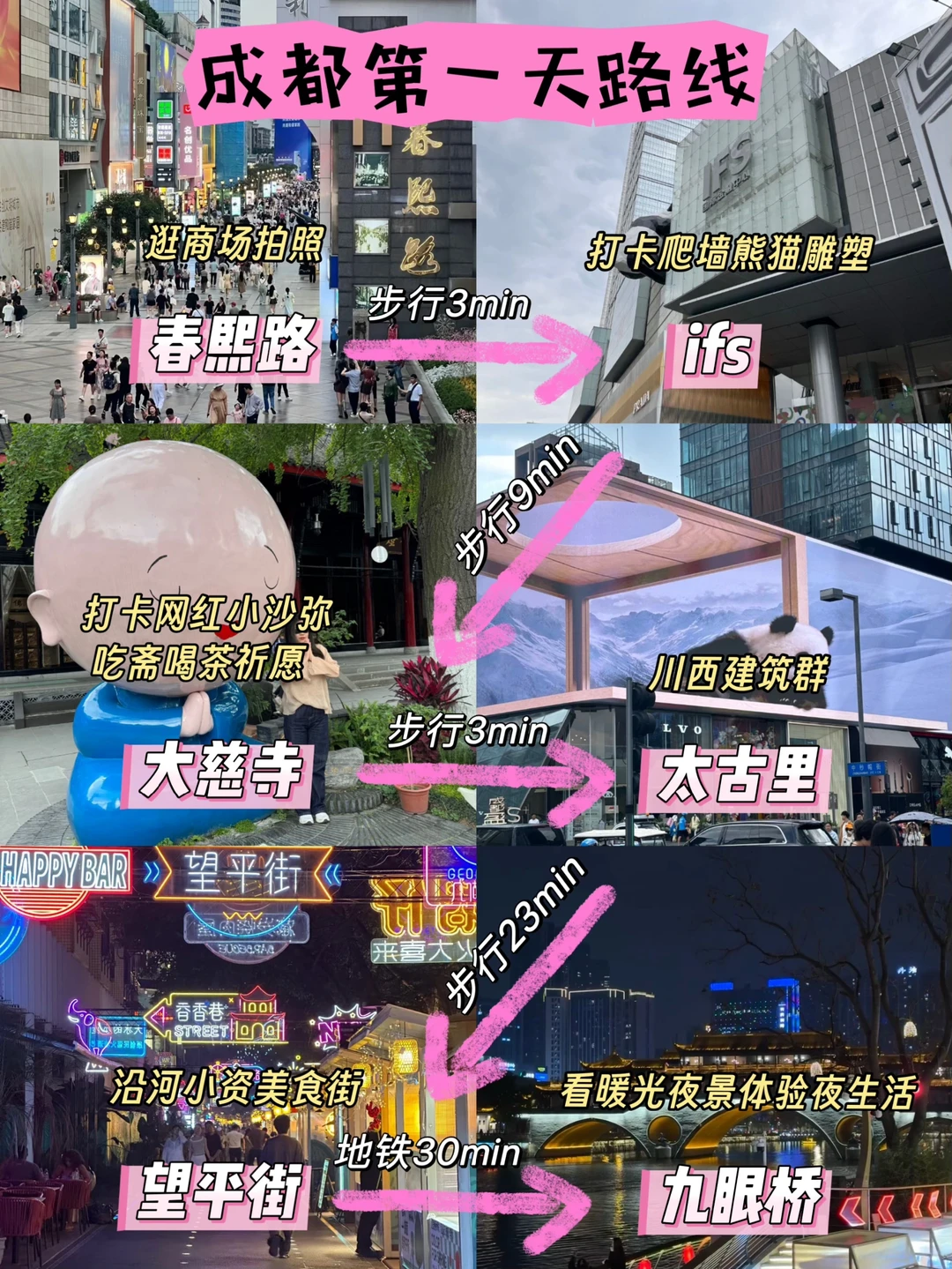 day1⃣️:春熙路➡️ifs➡️大慈寺➡️太古里➡️望平街➡️九眼桥