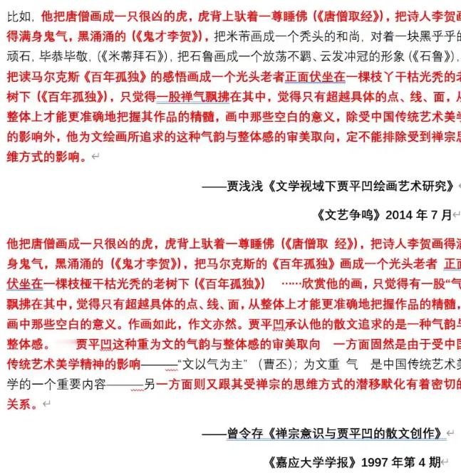 有趣的是,许多内容抄袭的严丝合缝一字不差,连洗下稿换下措辞都懒得做,看来这些作家还是低估了技术发展对文学圈潜规则的颠覆能力,现在低俗和抄袭新账旧账一起算,顺带揭露出文学圈的裙带关系,倒也算贾女士为文学圈做了一次正面贡献了。贾平凹女儿被指论文抄袭贾浅浅的论文是如何一路通关的
