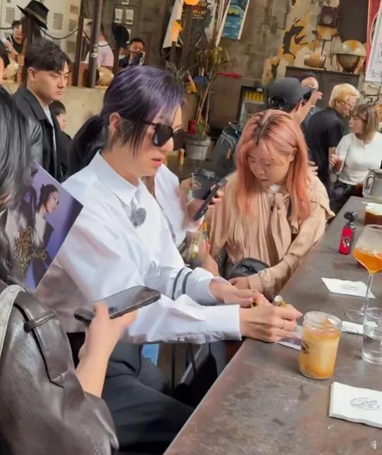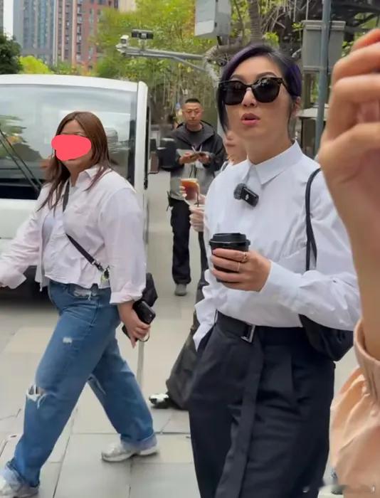 杨千嬅现身成都东郊记忆啦!白衬衫配黑裤手拿咖啡,被好多人偶遇围观🔥52岁状态也太能打,体态皮肤都在线,标志性紫发色依旧显眼。一看就是来为4.11-12成都演唱会提前准备,天后氛围感拉满!