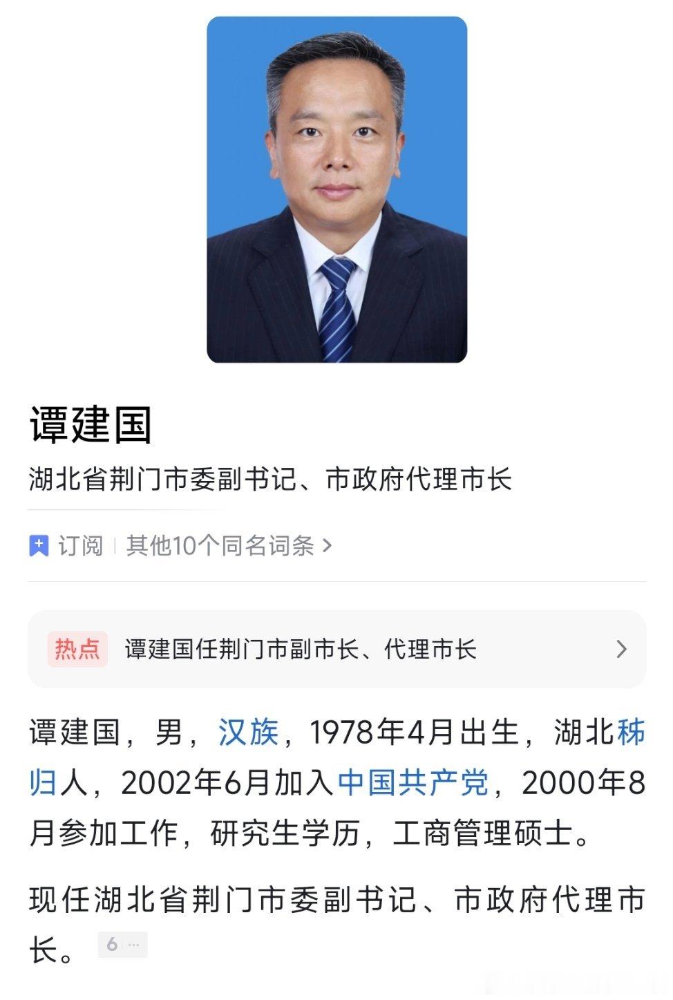 陈家伟任荆门市委书记,谭建国任荆门市副市长、代理市长。
