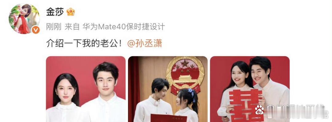 金莎孙丞潇领证金莎发博晒和孙丞潇领证合照,官宣领证。